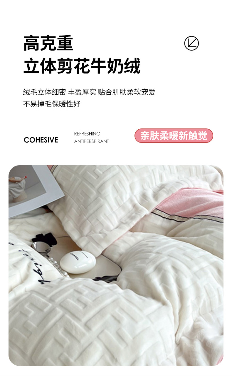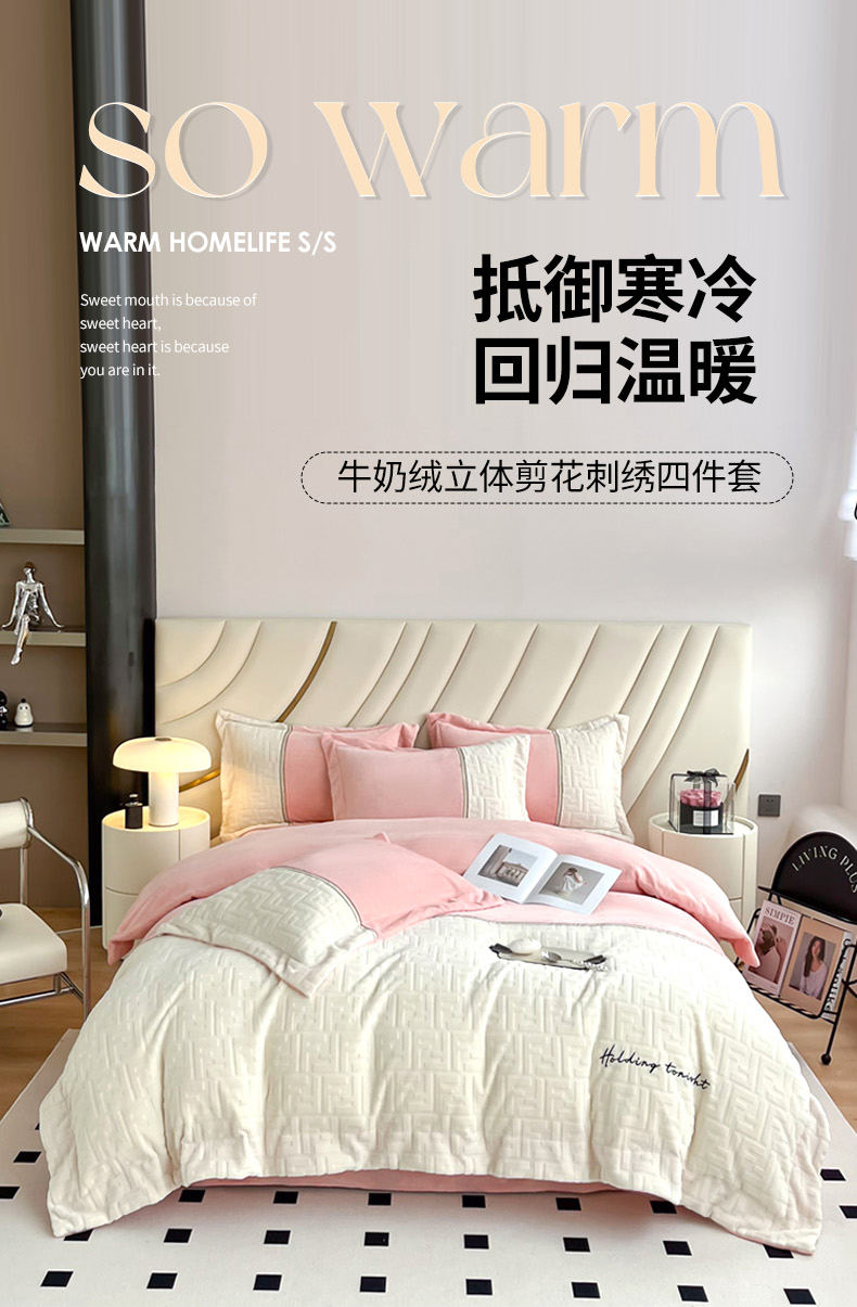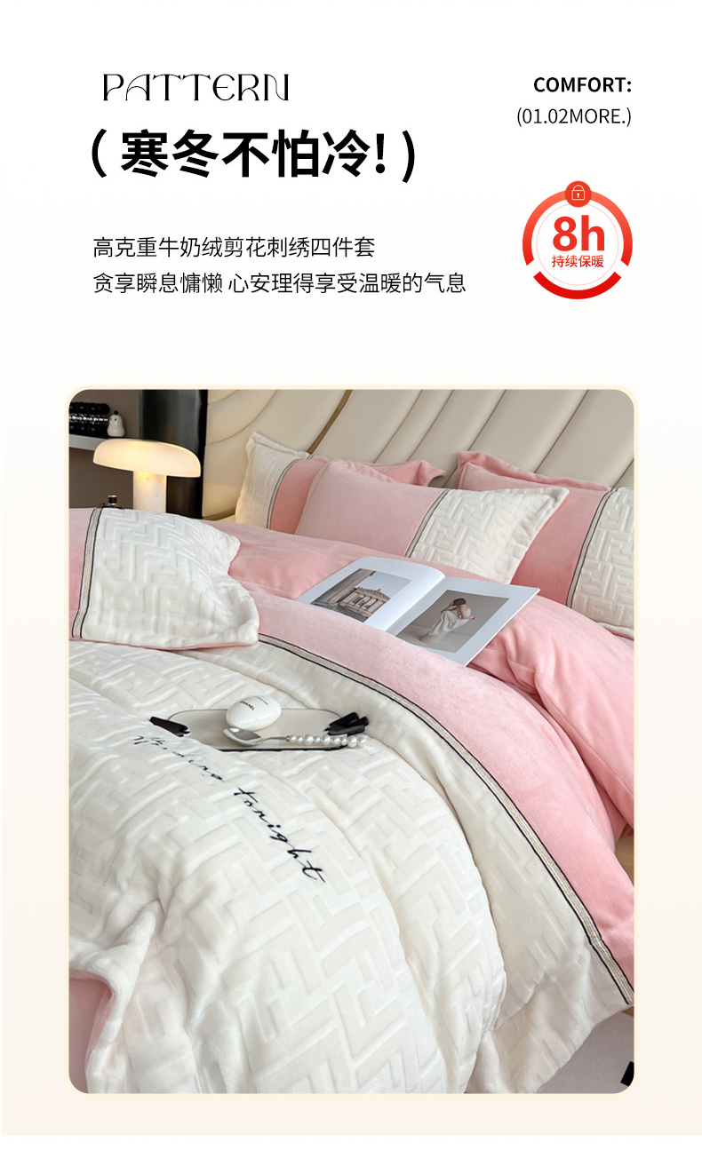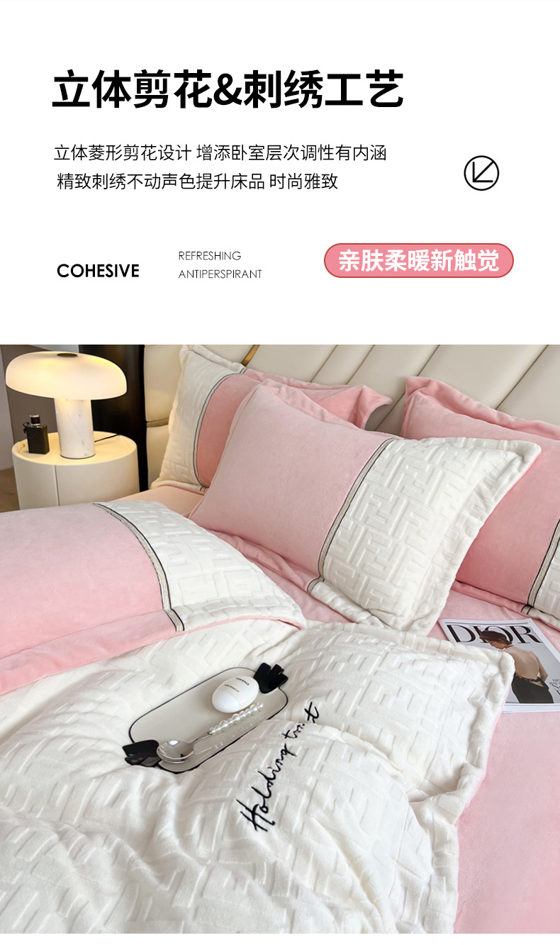 2024秋冬新款时尚宽边立体剪花刺绣加厚牛奶绒四件套-赫莲娜系列 赫莲娜粉玉