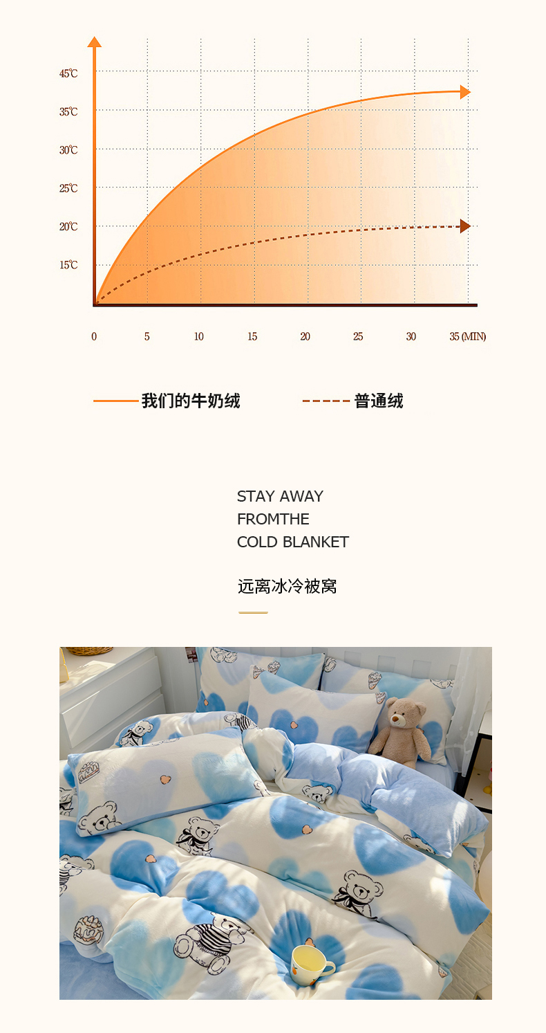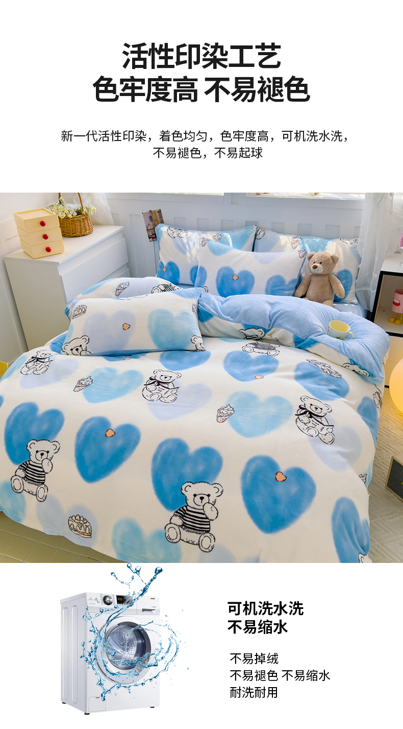 当前位置: 91家纺网 > 商品网购 > 床品套件 > 四件套 > 牛奶绒四件套 > 枋梢家纺 2024新款加厚牛奶绒印花四件套 爱心蓝熊