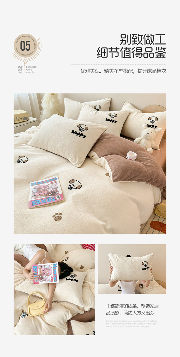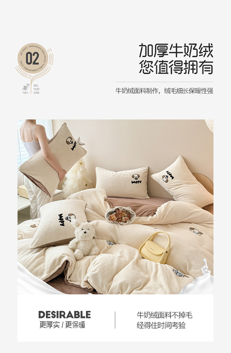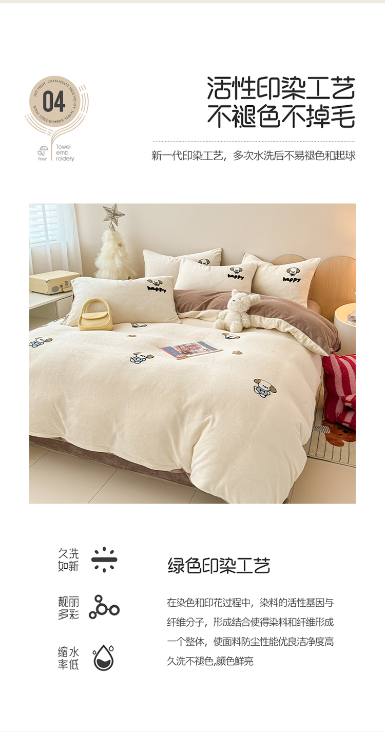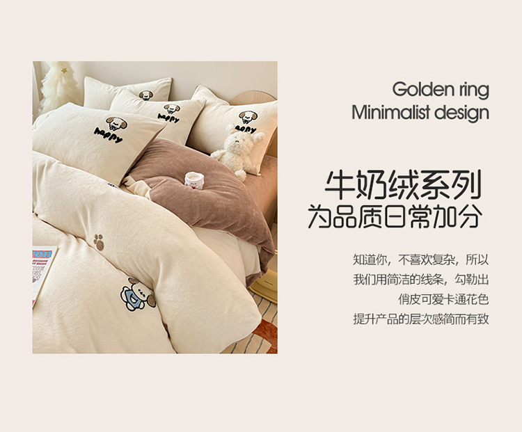当前位置: 91家纺网 > 商品网购 > 床品套件 > 四件套 > 牛奶绒四件套 > 2024新款卡通牛奶绒专版毛巾绣四件套--萌小狗 萌小狗奶白奶咖