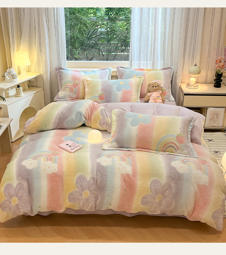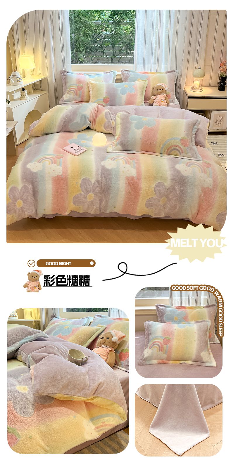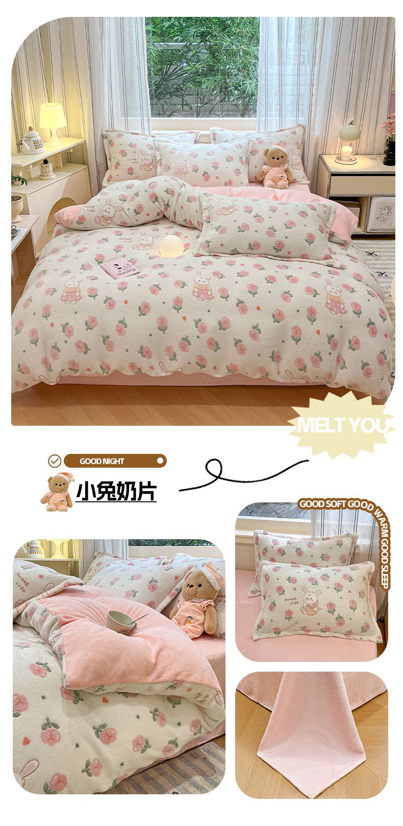 当前位置: 91家纺网 > 商品网购 > 床品套件 > 四件套 > 其它四件套 > 贝扬思家纺 2024新款加厚雪花绒印花四件套 小兔奶片