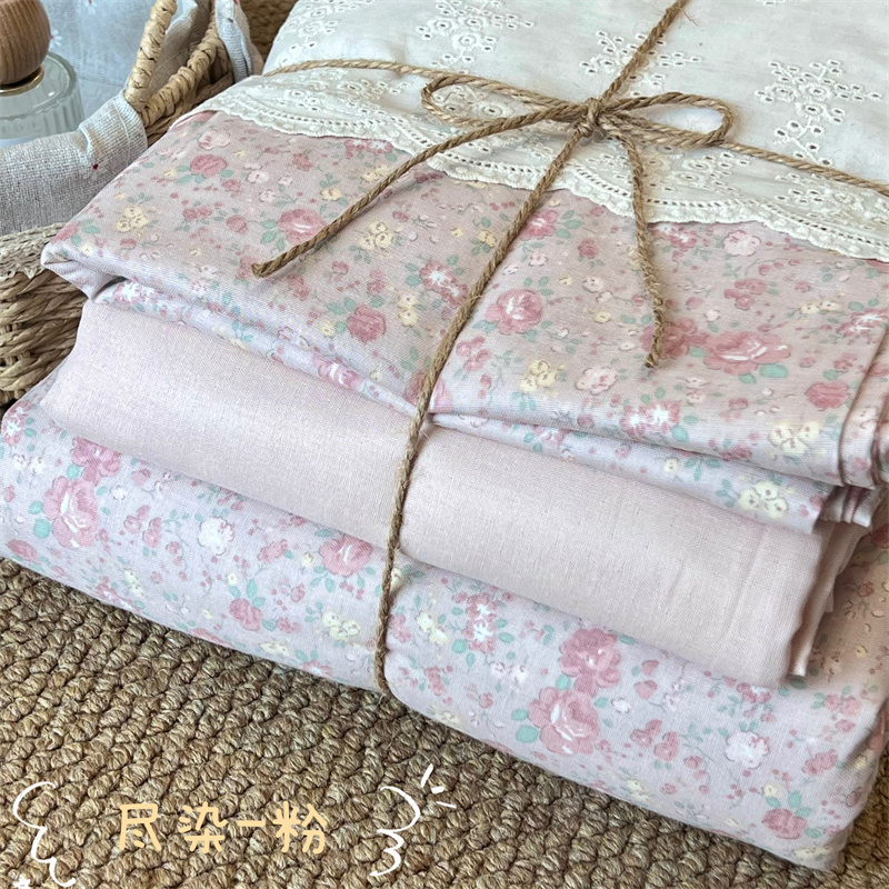 商品名称:2024新款全棉印花双层纱四件套--蕾丝花边款 尽染-粉