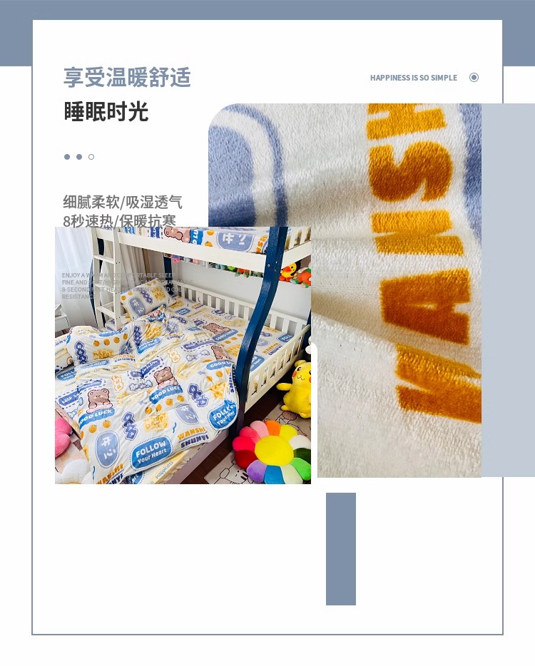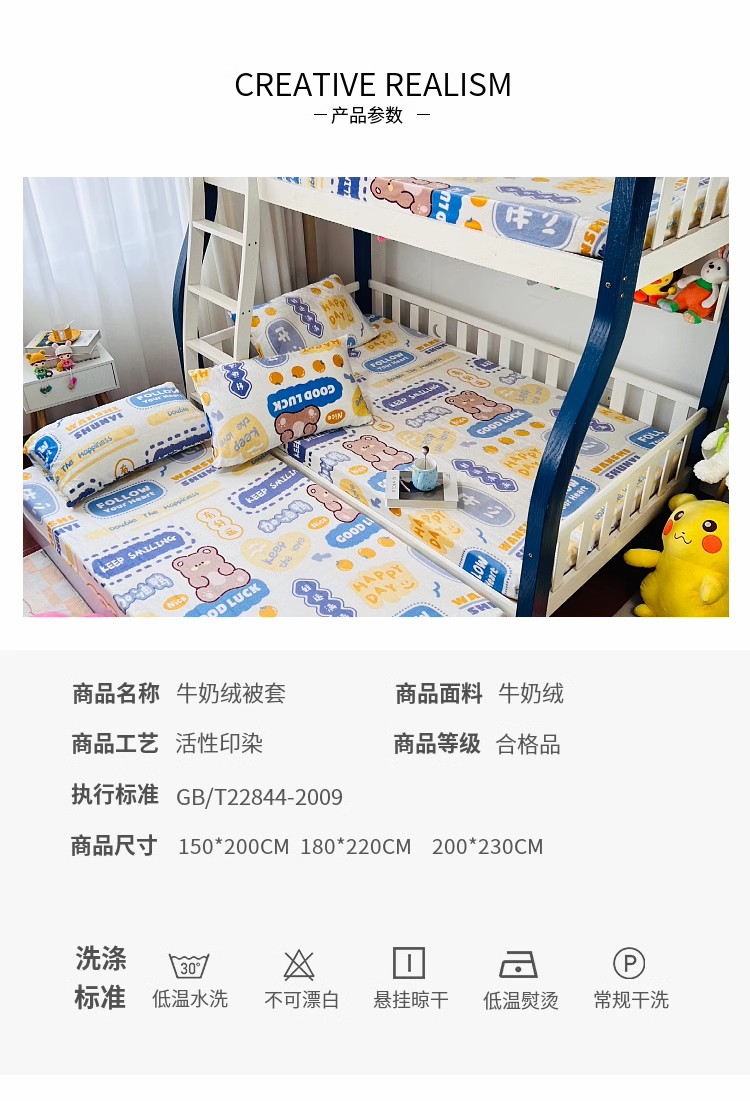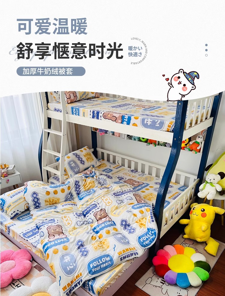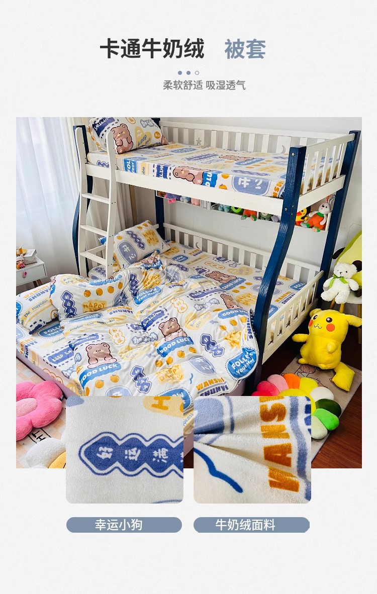 商品名称:小虾米 2024新款加厚上下床牛奶绒单被套 好运满满