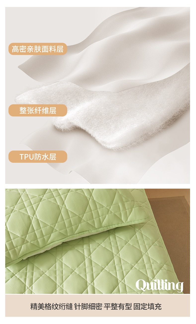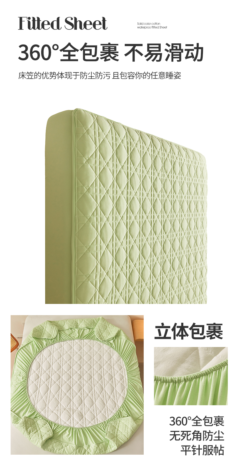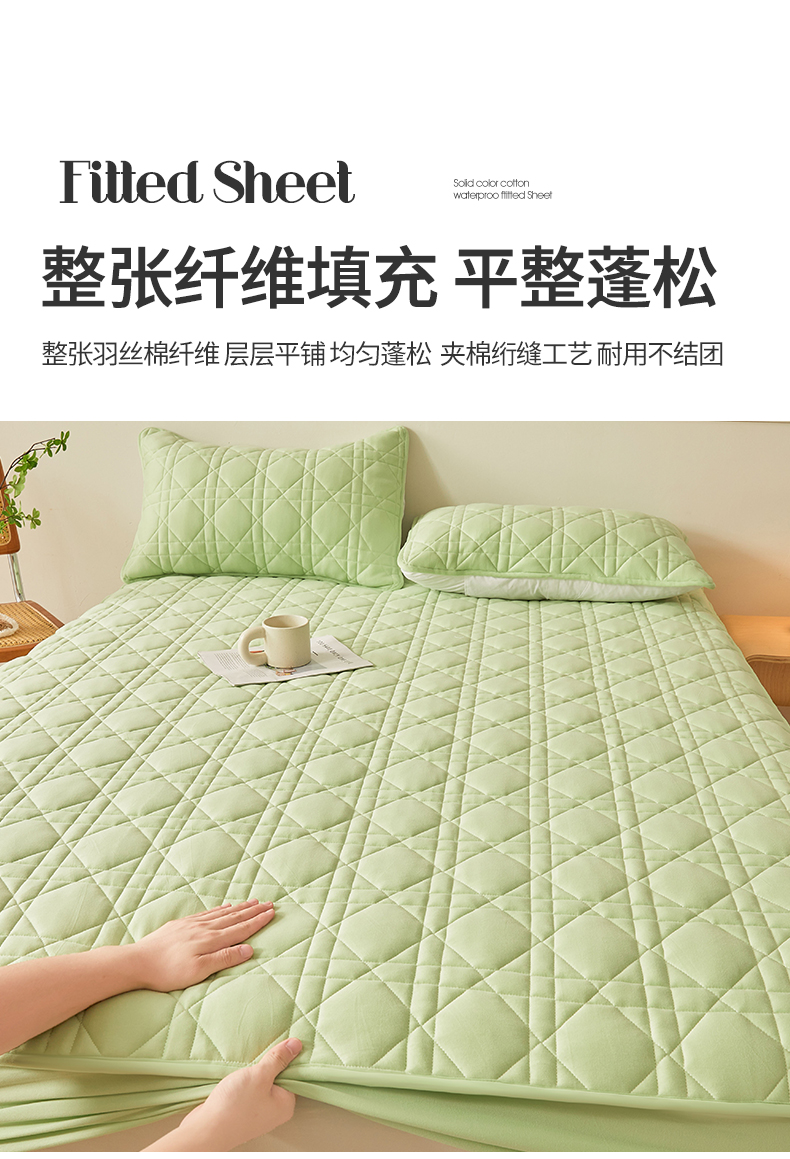 予梦家纺 2024新款纯色夹棉防水床笠 星耀格 果绿