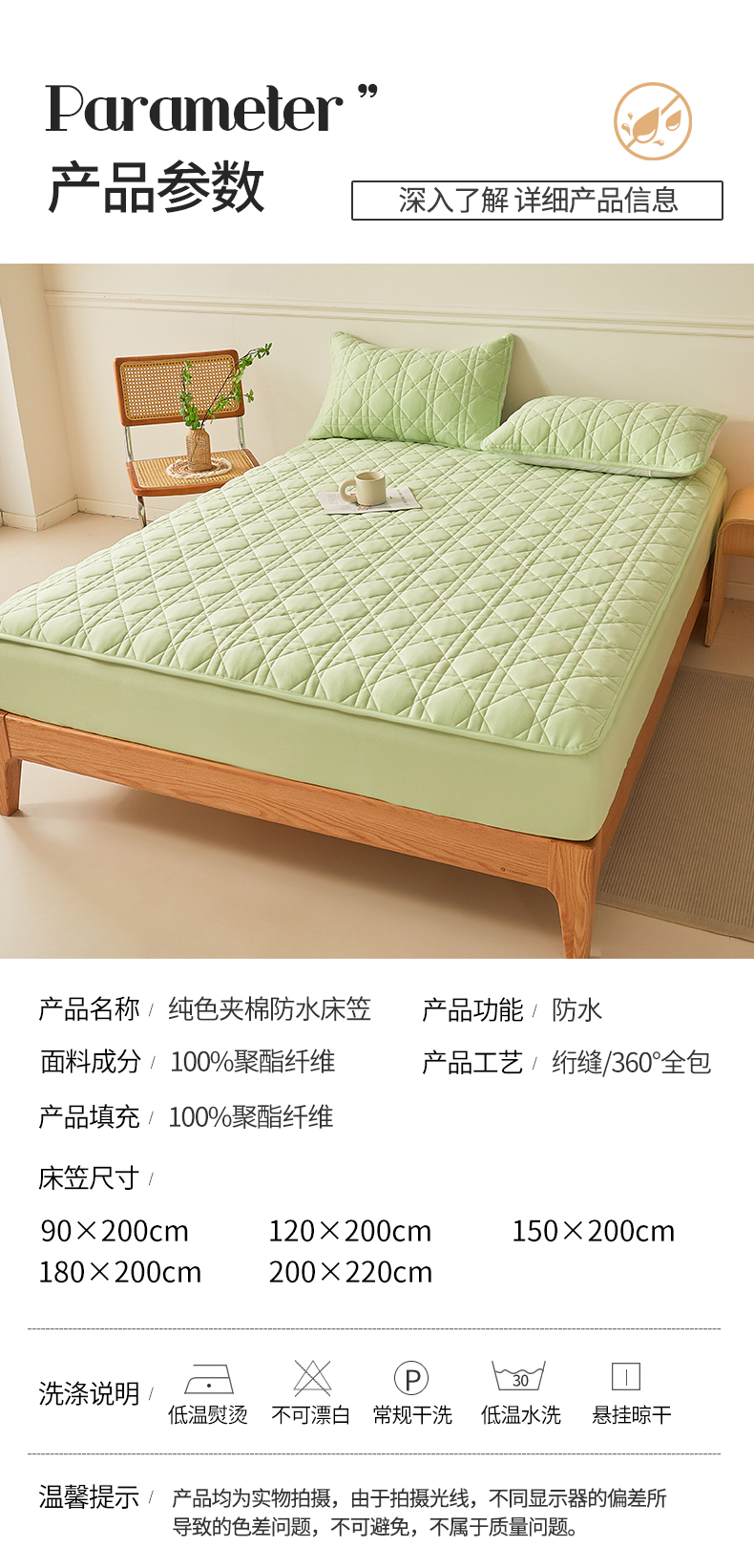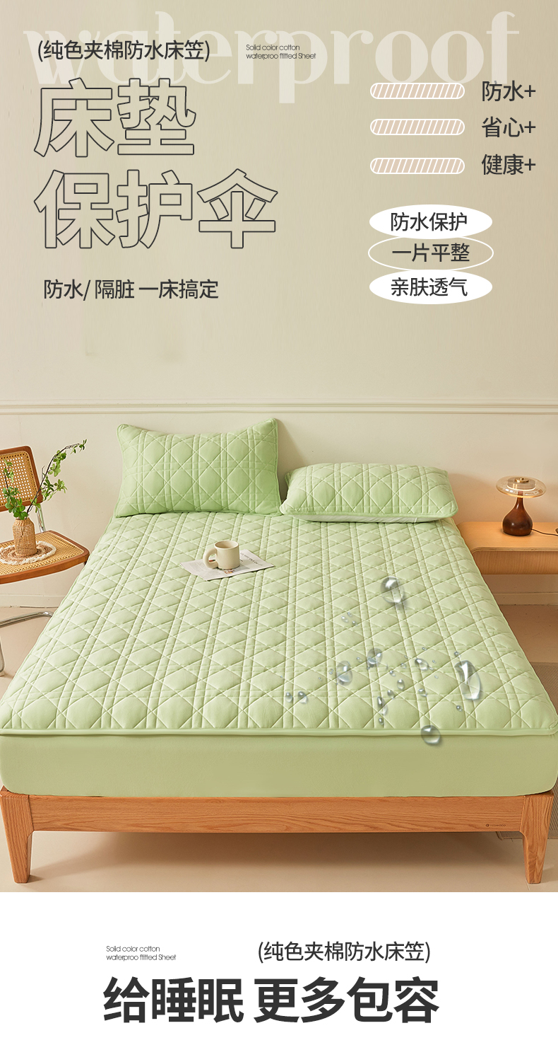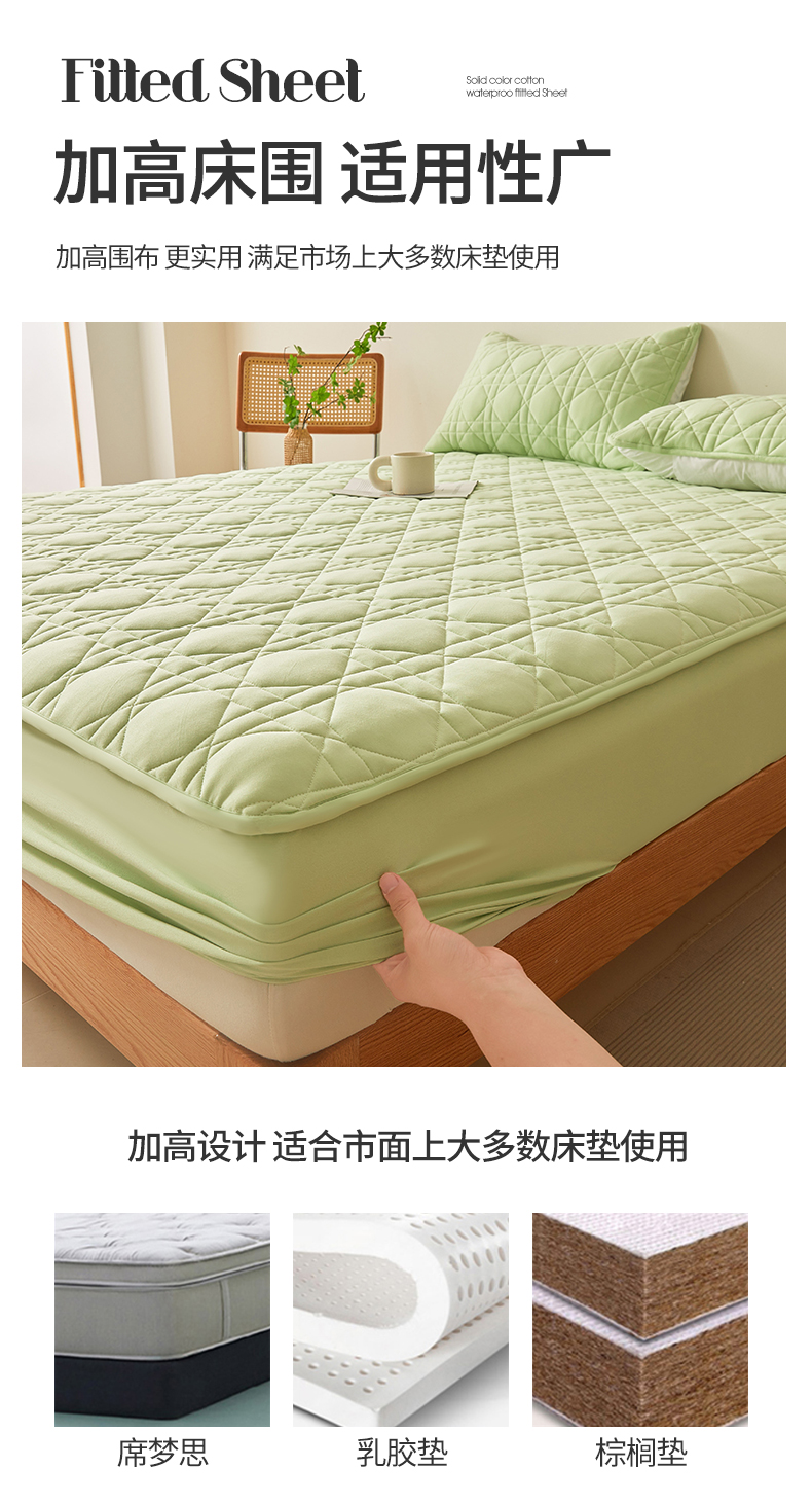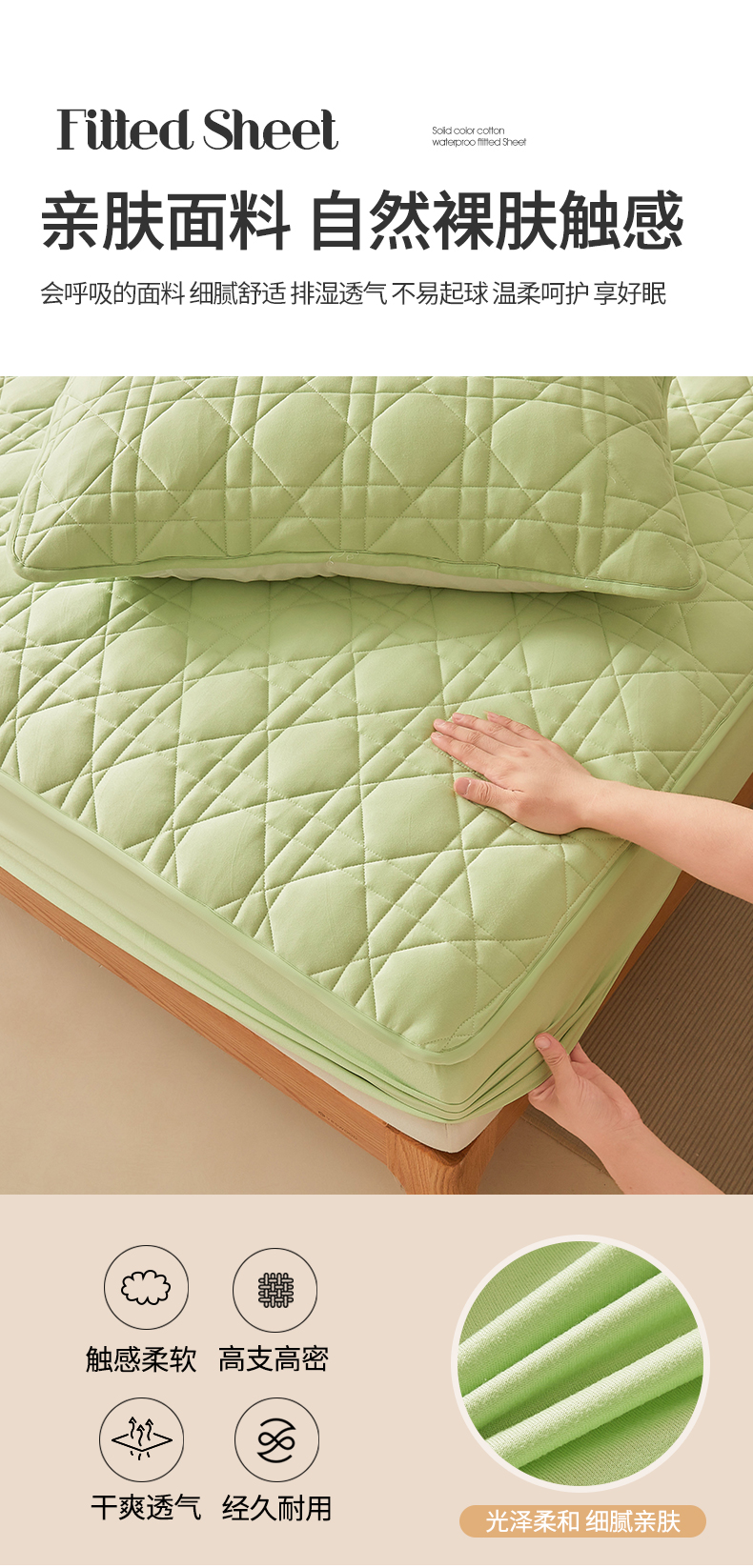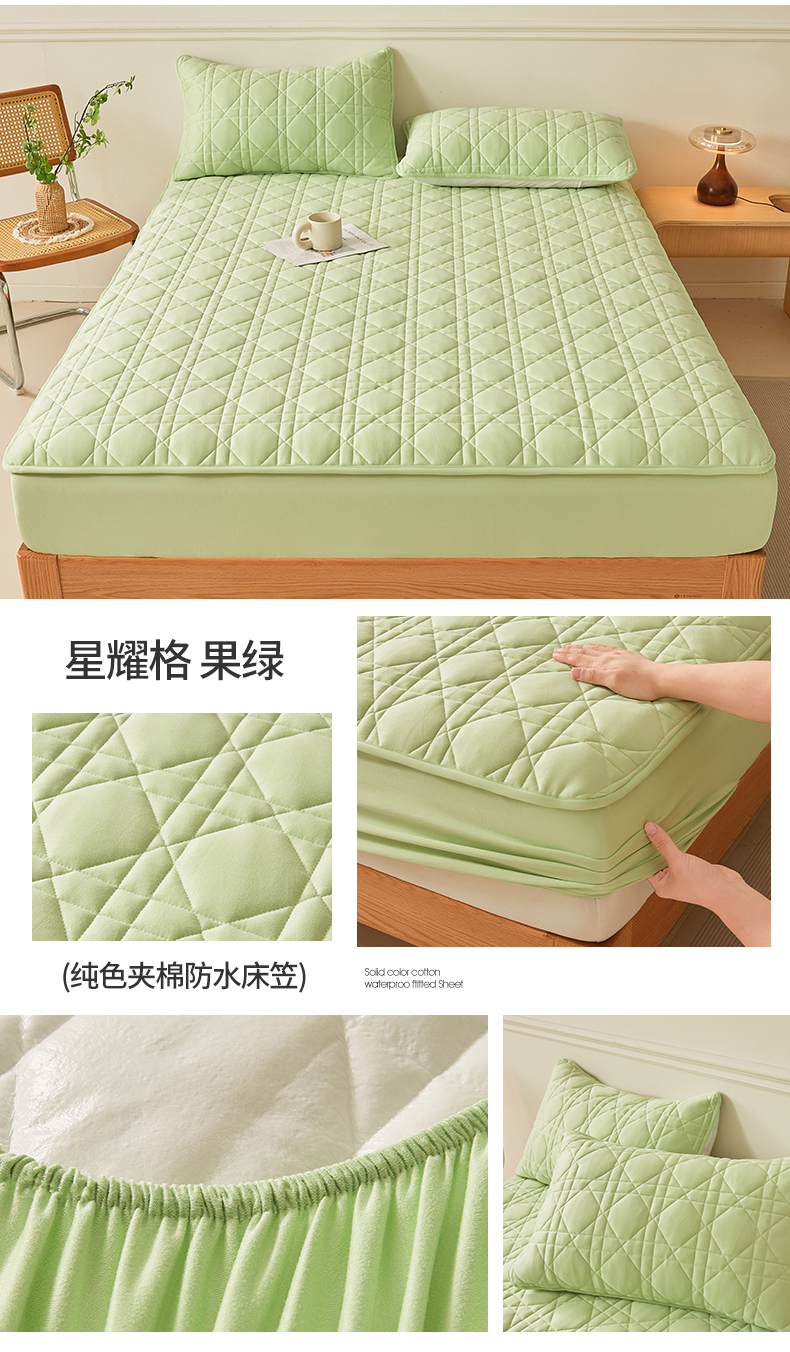 商品名称:予梦家纺 2024新款纯色夹棉防水床笠 星耀格 果绿