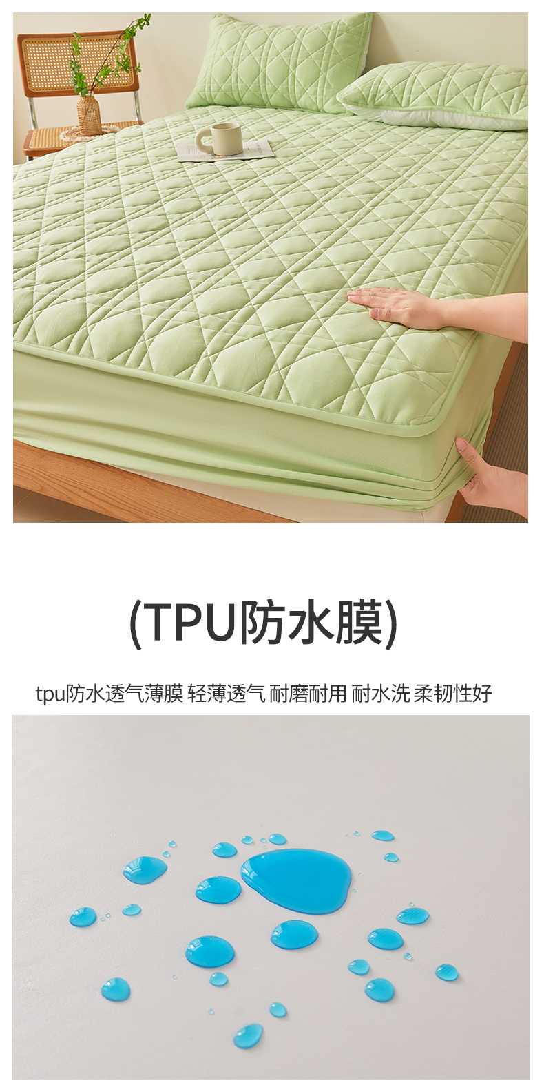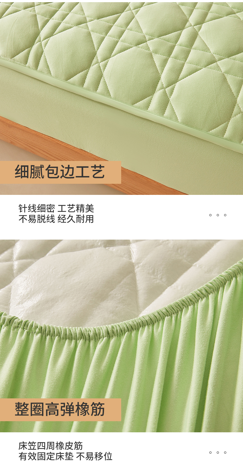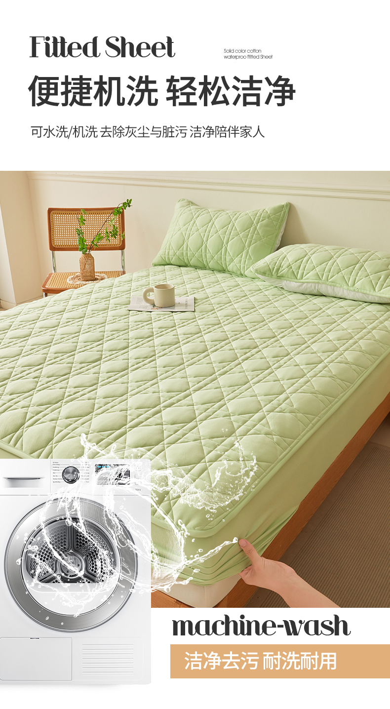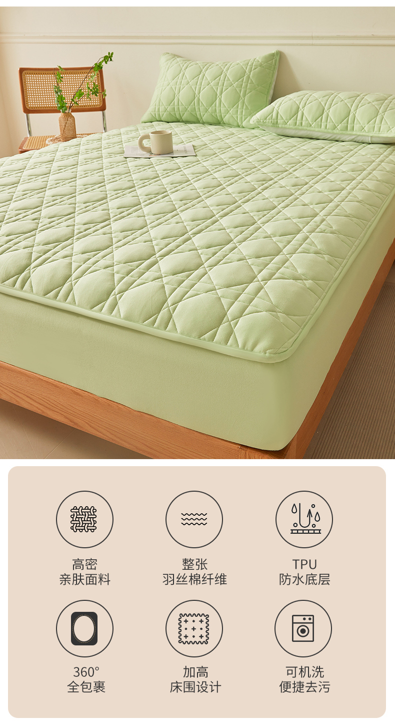 商品名称:予梦家纺 2024新款纯色夹棉防水床笠 星耀格 果绿