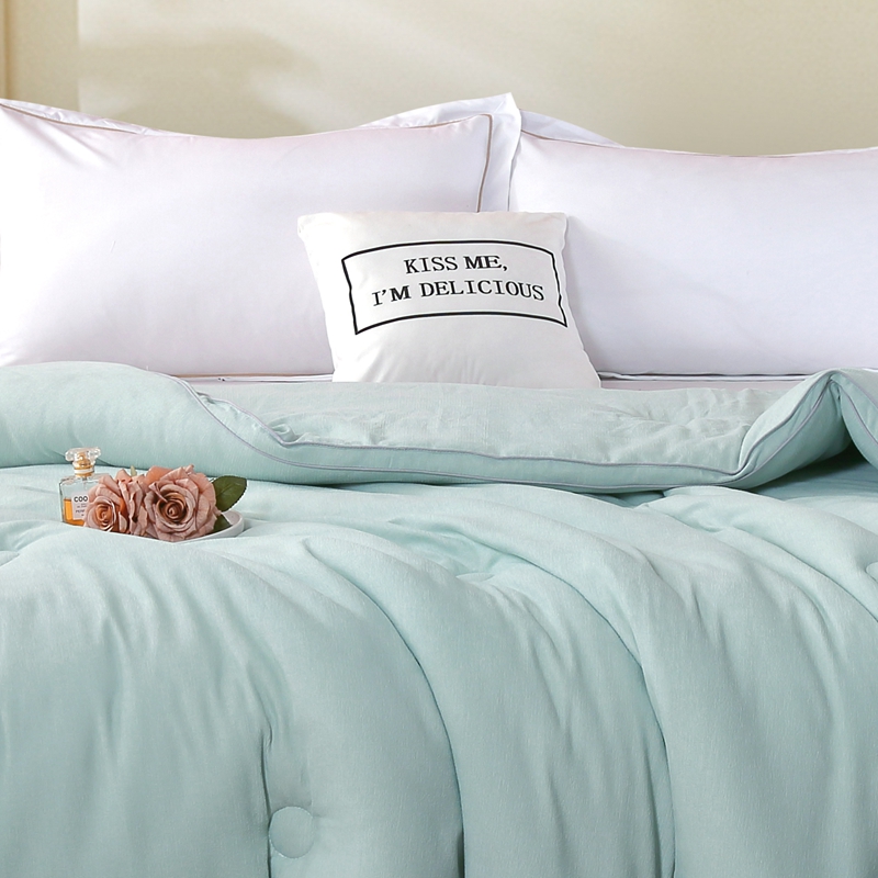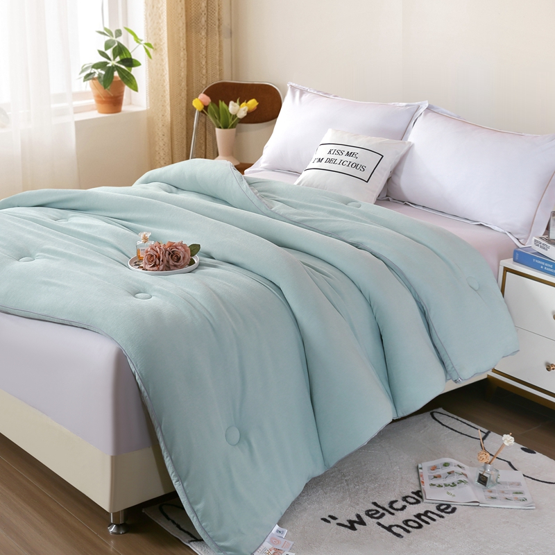 • 91家纺网 家纺一手货源 找家纺 (总)丝薇雅 2024新款针织棉单边冬被,本白,湖蓝,浅粉,浅绿,天空蓝