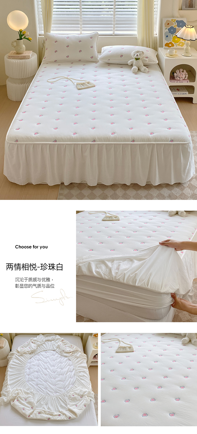 尊康家纺(原磊科) 2024新款全棉色织床裙款床笠-两情相悦 两情相悦-珍珠白