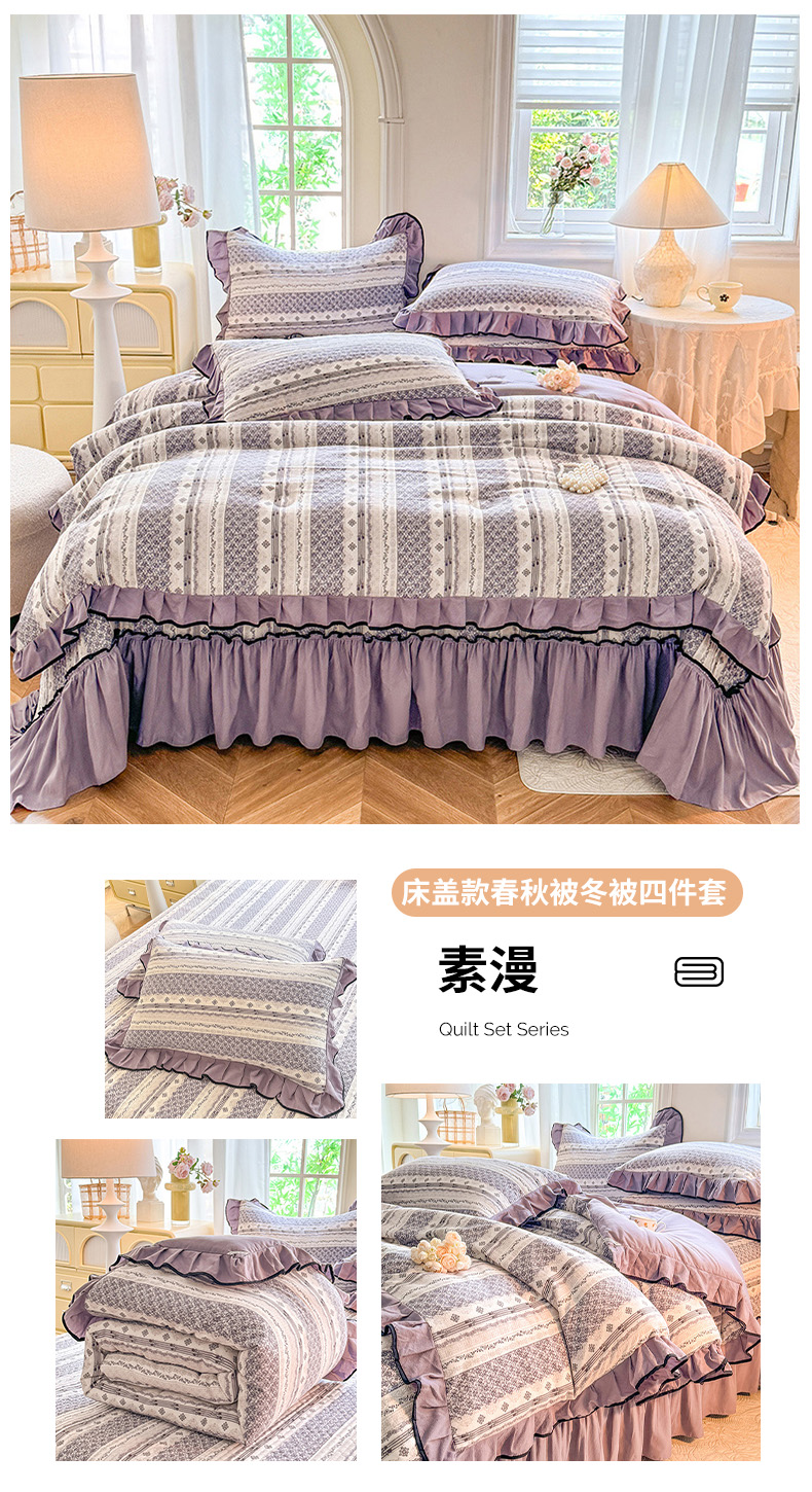 • 91家纺网 家纺一手货源 找家纺 韩约家纺 2025新款1针织棉皱皱纱床盖款夏凉被春秋被冬被四件套 素漫