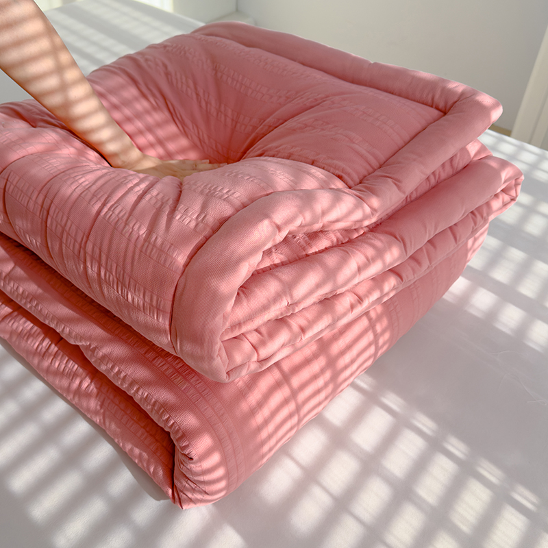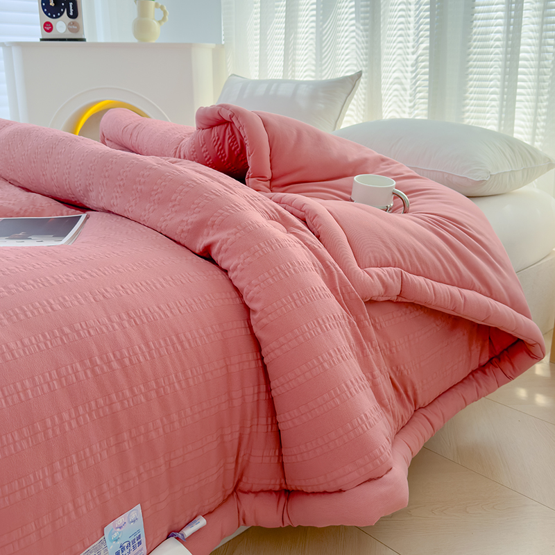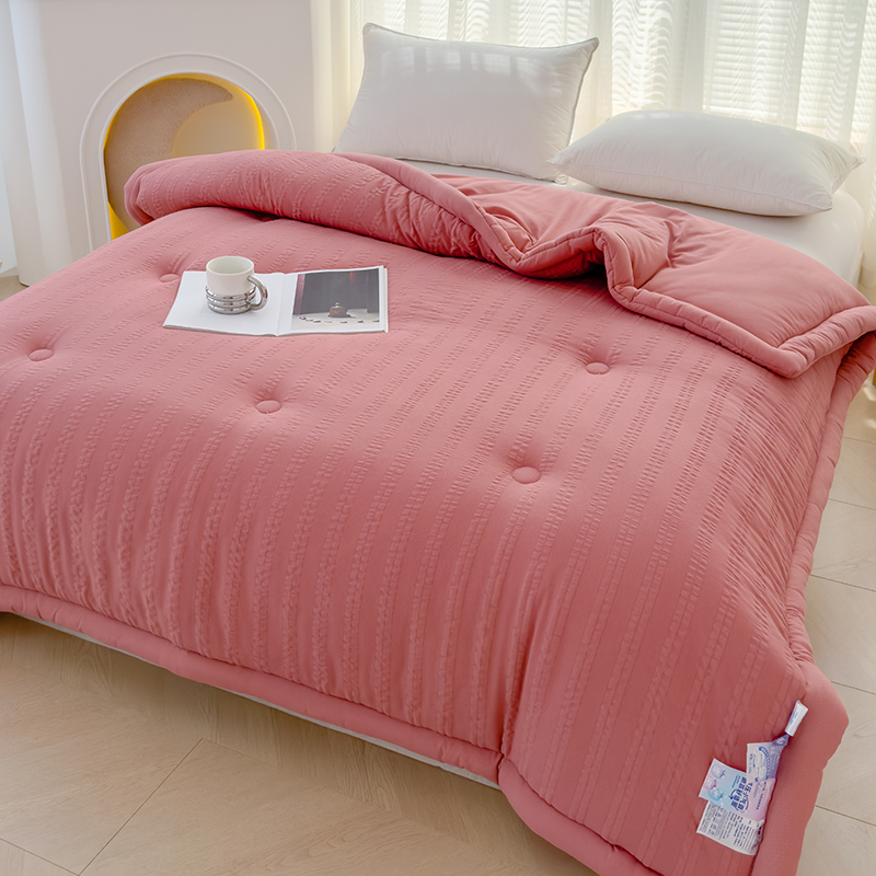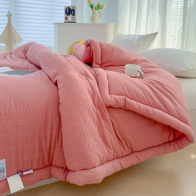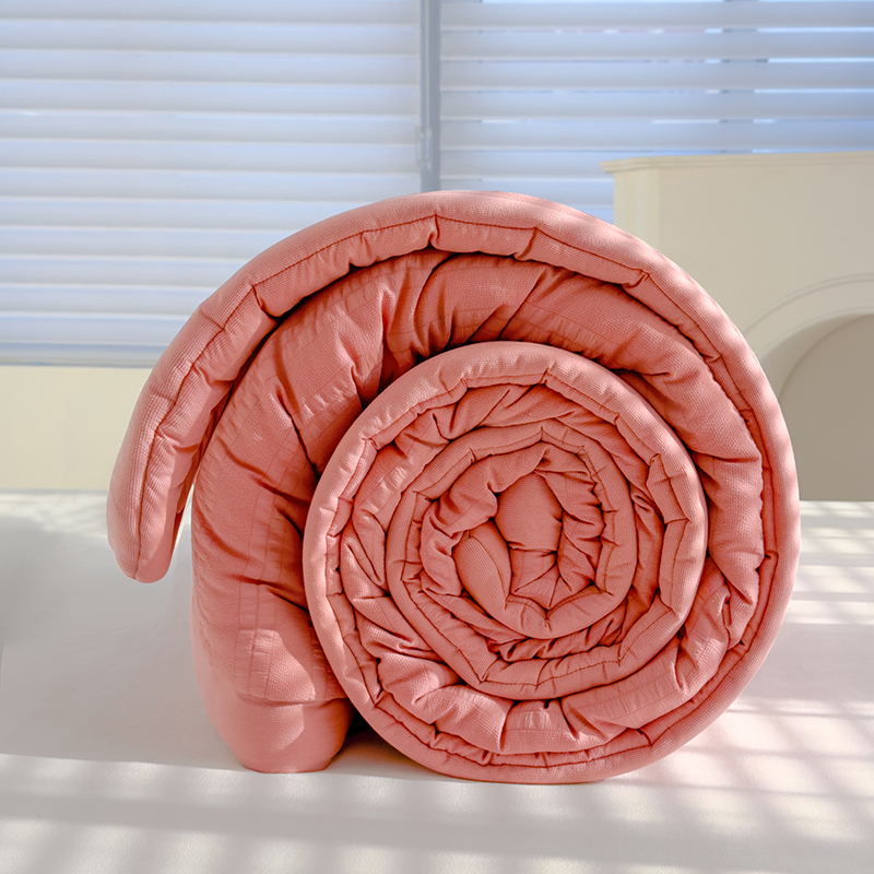 蓝冰家纺 2024新款纯色手包边泡芙棉冬被被子被芯 豆沙色