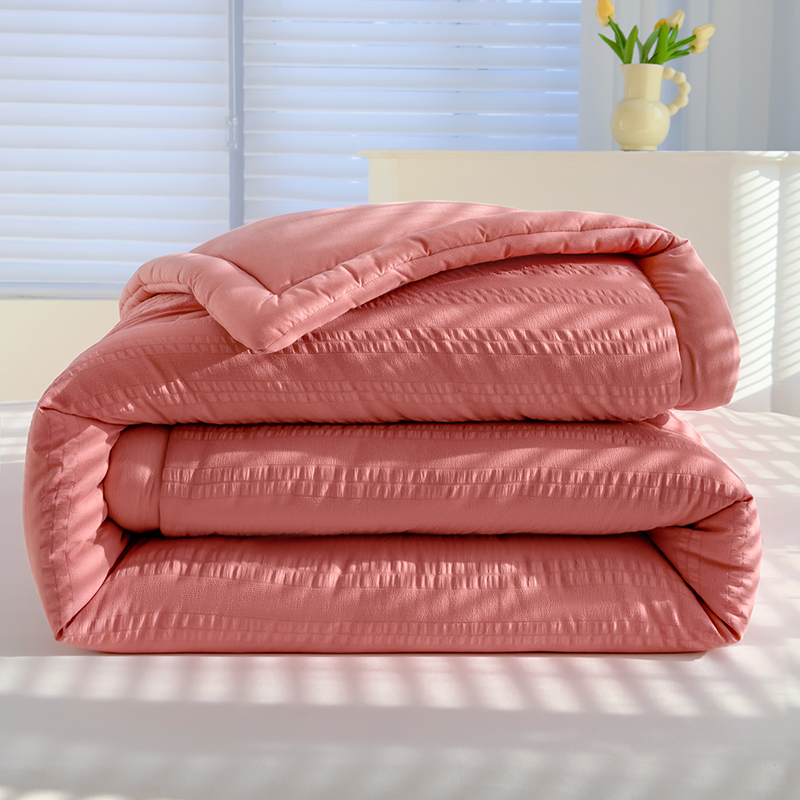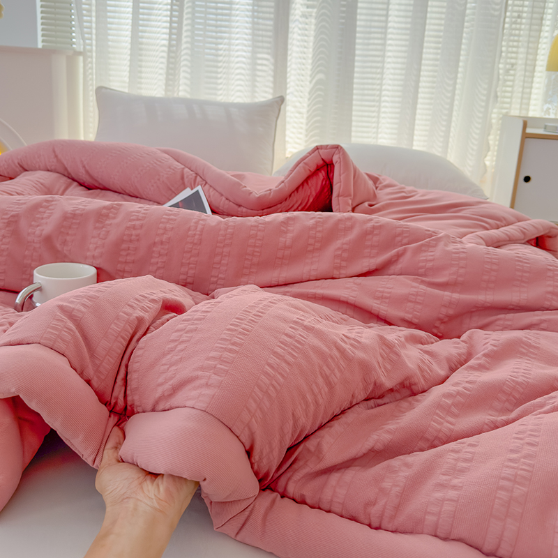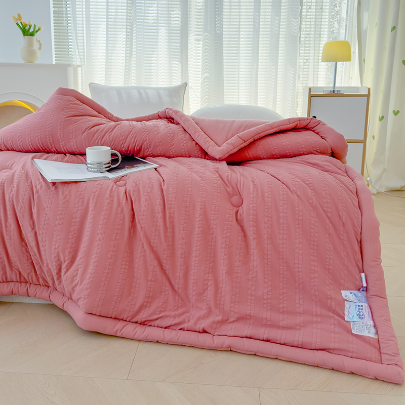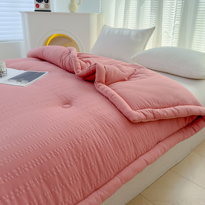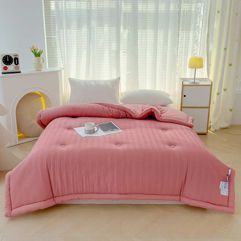 蓝冰家纺 2024新款纯色手包边泡芙棉冬被被子被芯 豆沙色