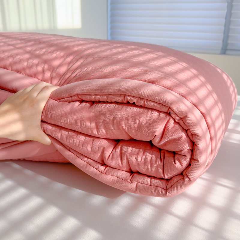 (总)蓝冰家纺 2025新款雕花牛奶绒羊羔绒床垫,宾利兰,粉桃桃,落日橙,绅士灰