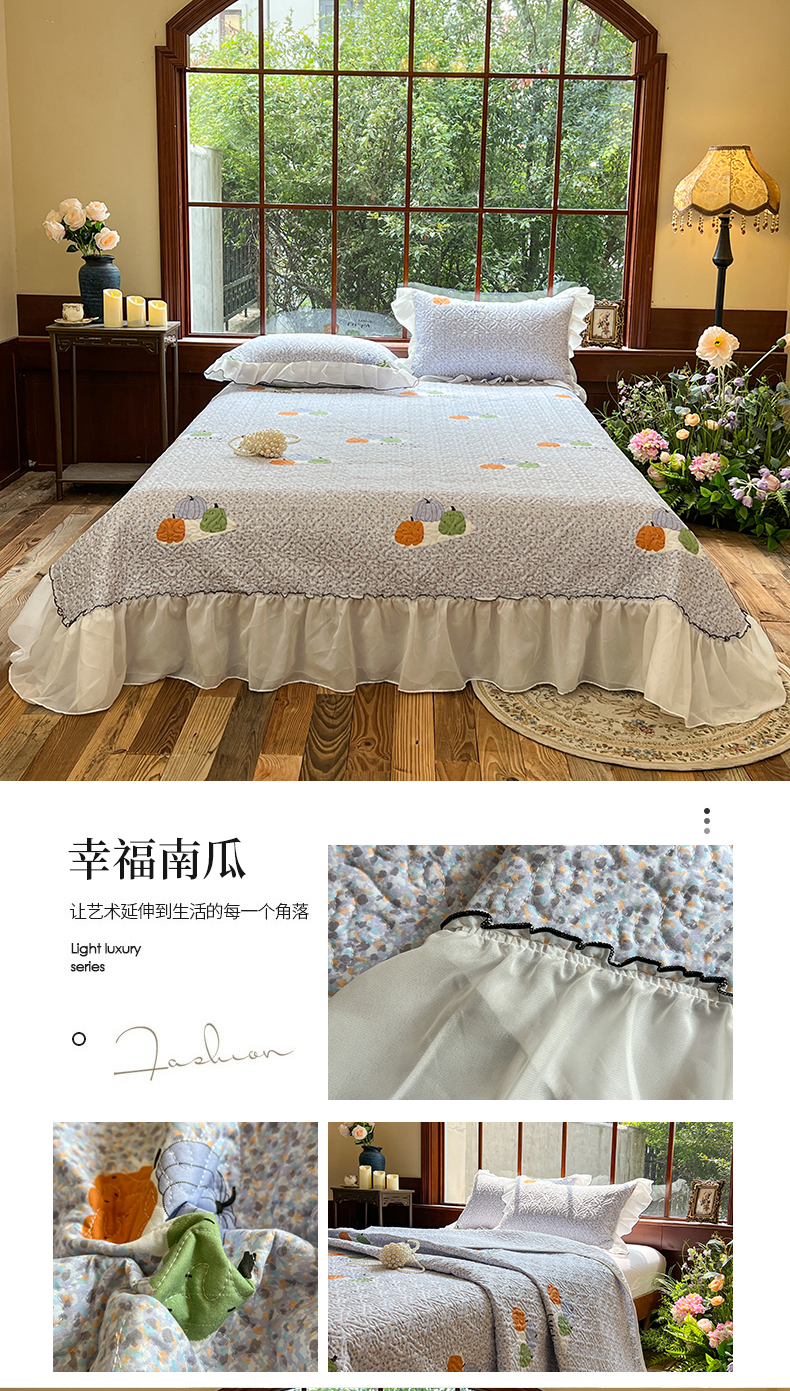 商品名称:易辰美 2024新款亲肤舒适印花夹棉床盖床裙 幸福南瓜