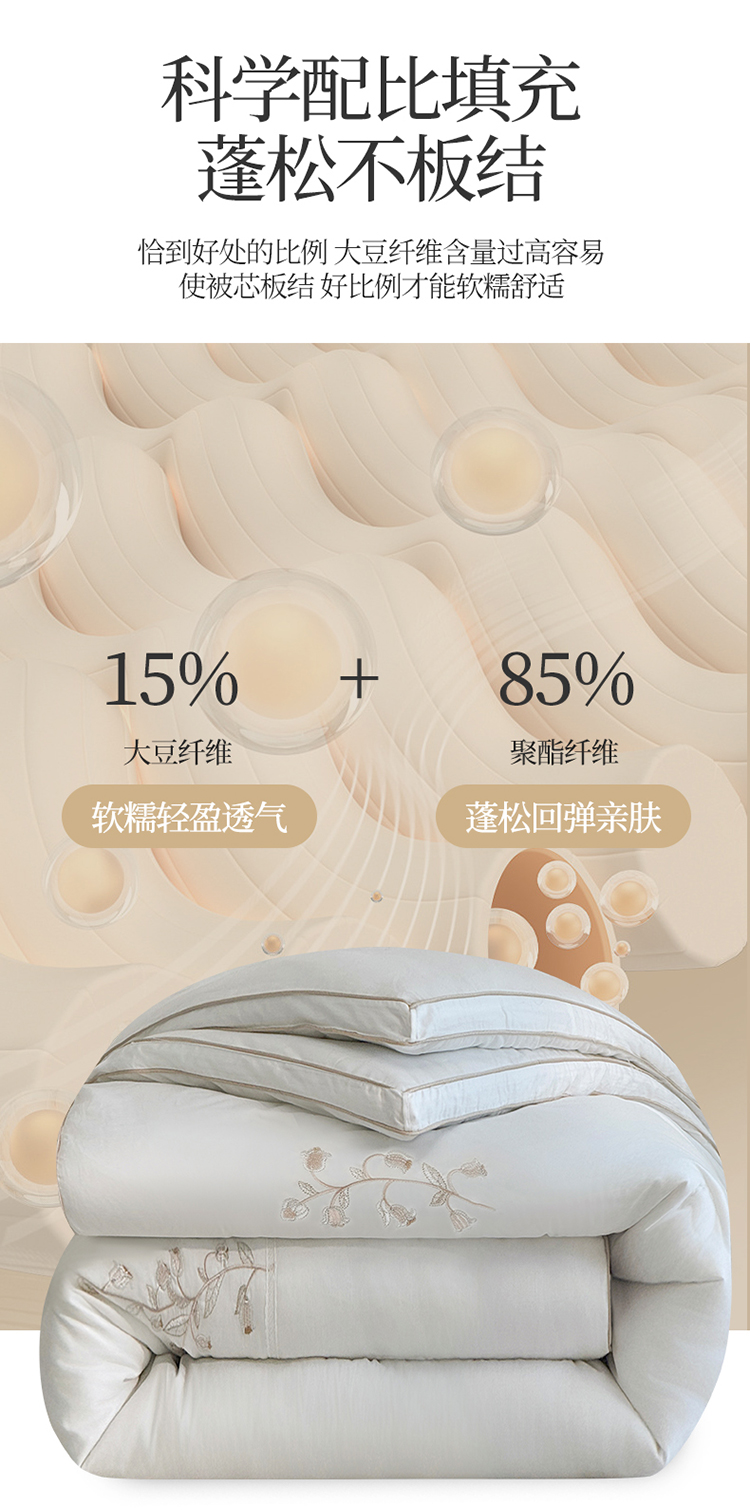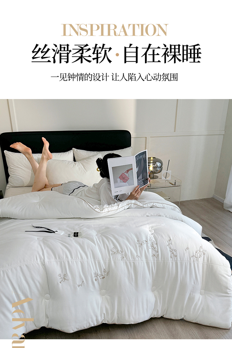 2024新款60s全棉立体刺绣大豆被子被芯 花蔓-本白