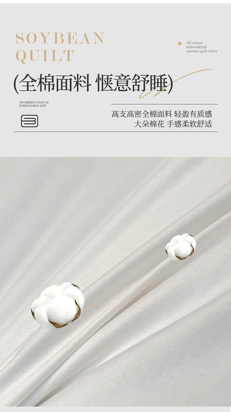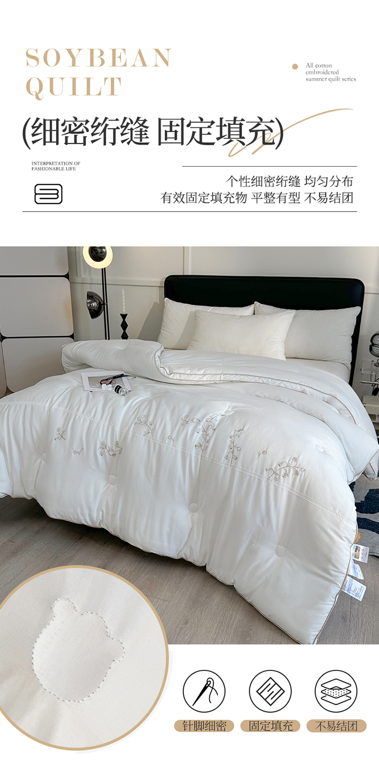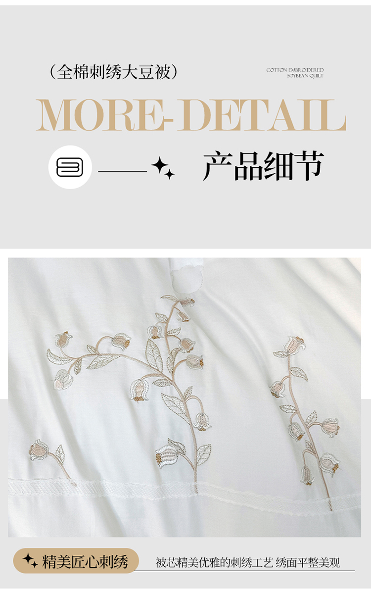 商品名称:2024新款60s全棉立体刺绣大豆被子被芯 花蔓-本白