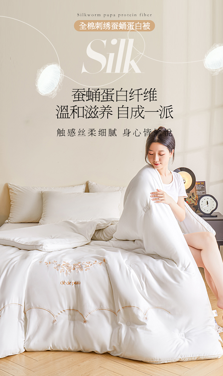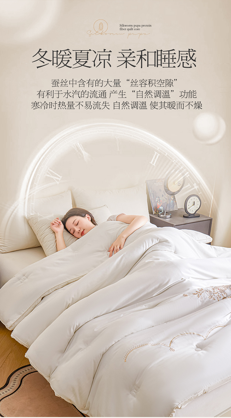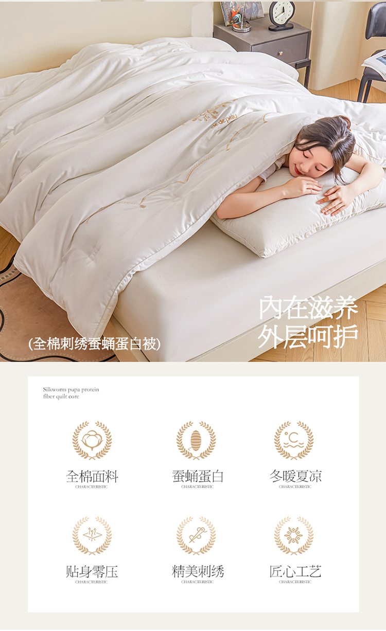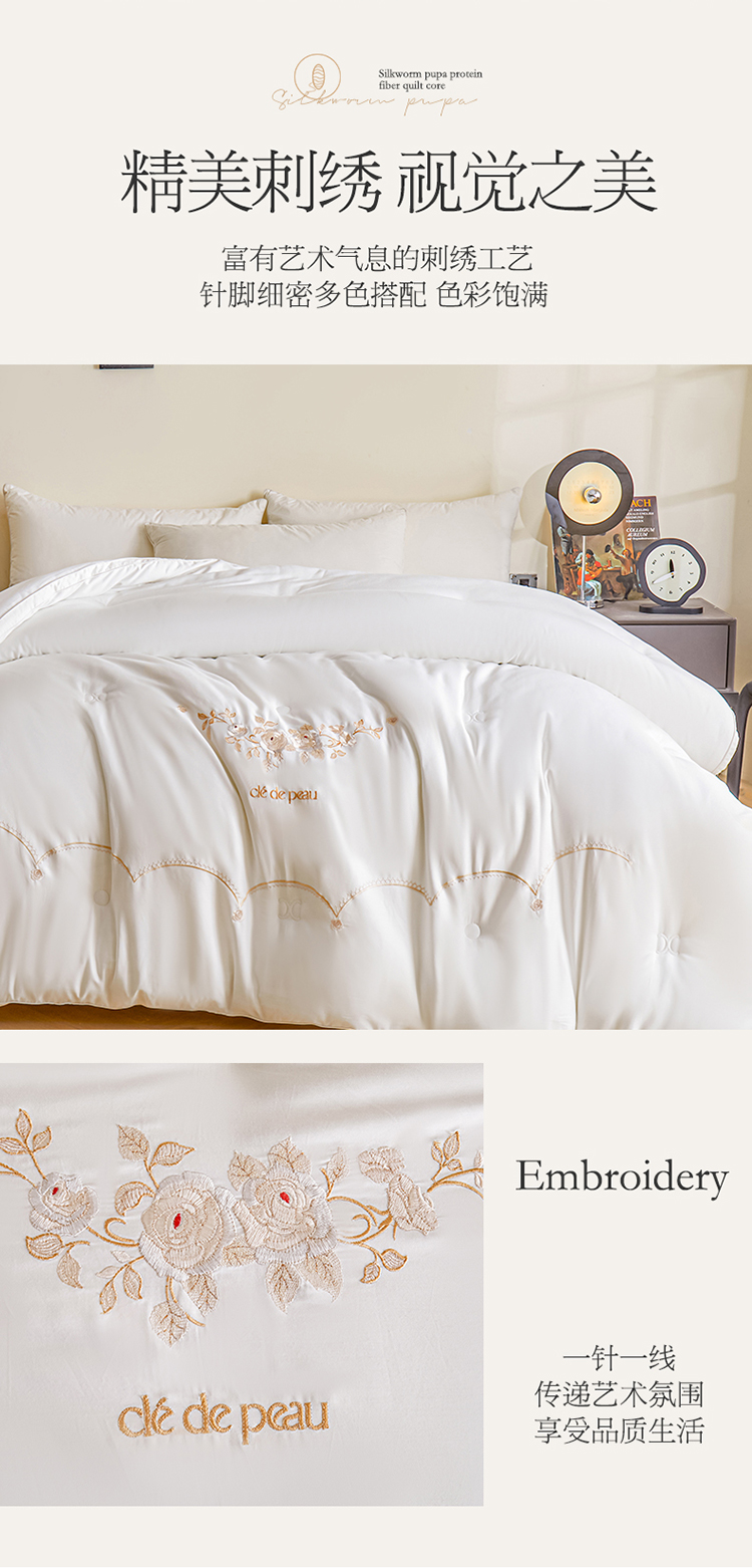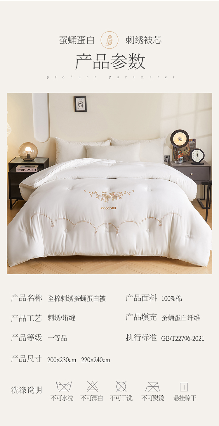 商品名称:2024新款60s全棉立体刺绣蚕蛹蛋白被子被芯 本白