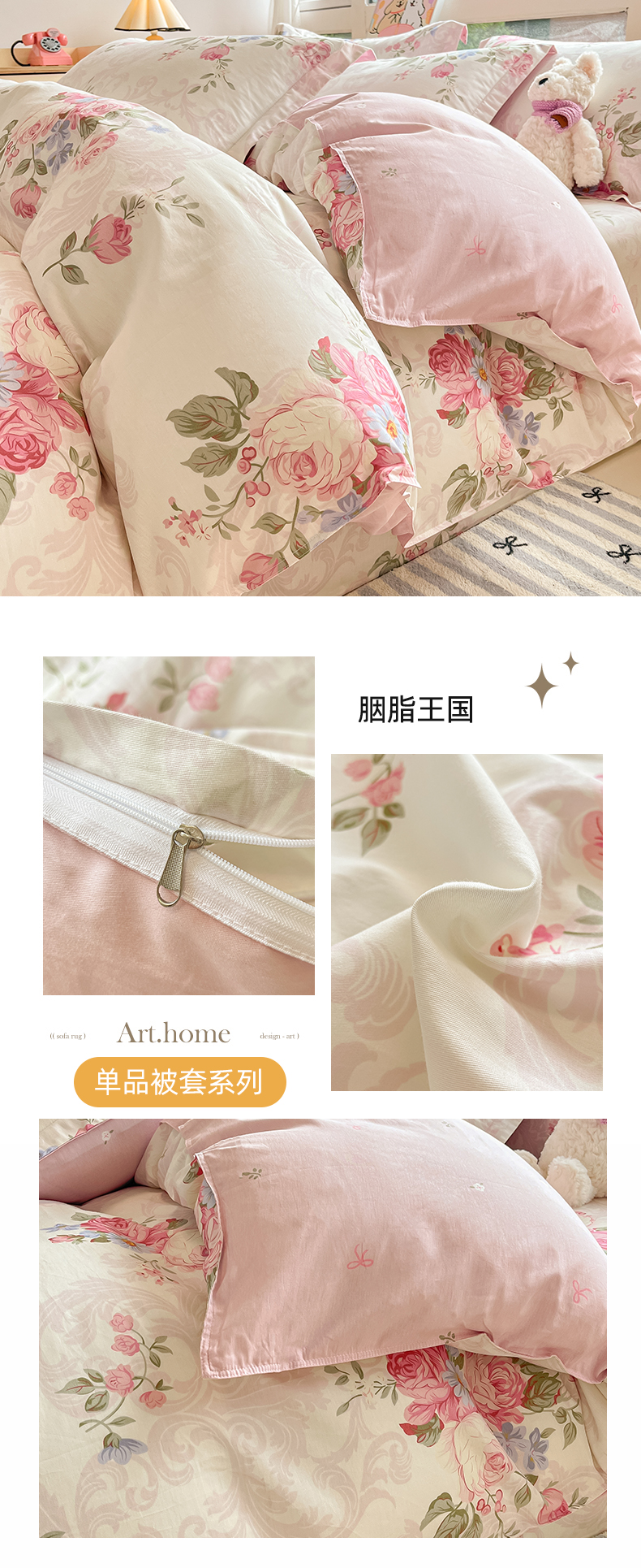 商品名称:铭成家纺 2024新款新疆棉喷气印花小清新系列单被套 胭脂玉园