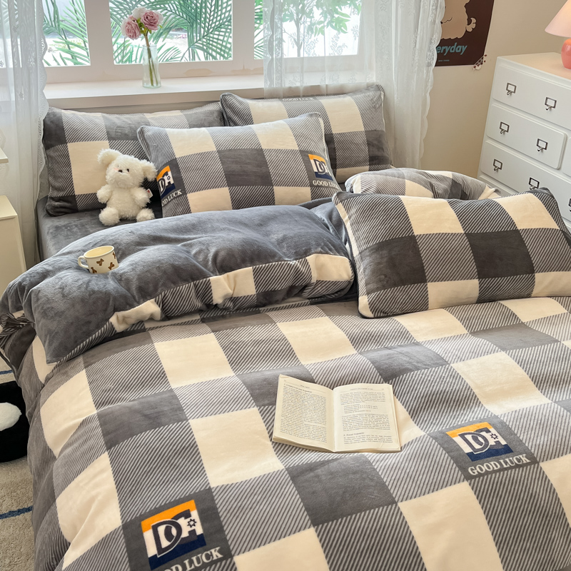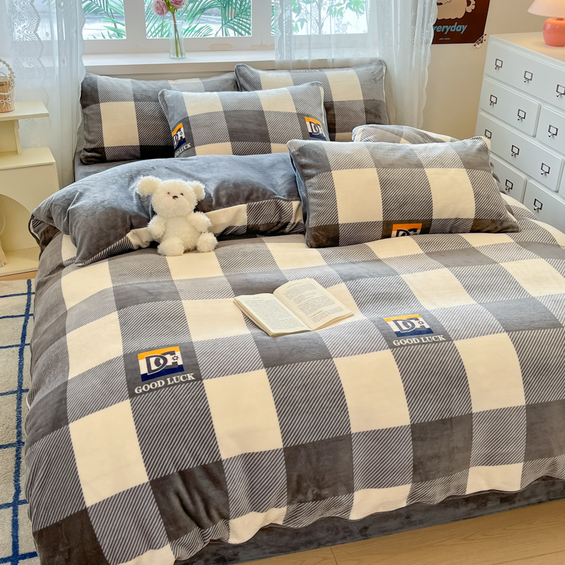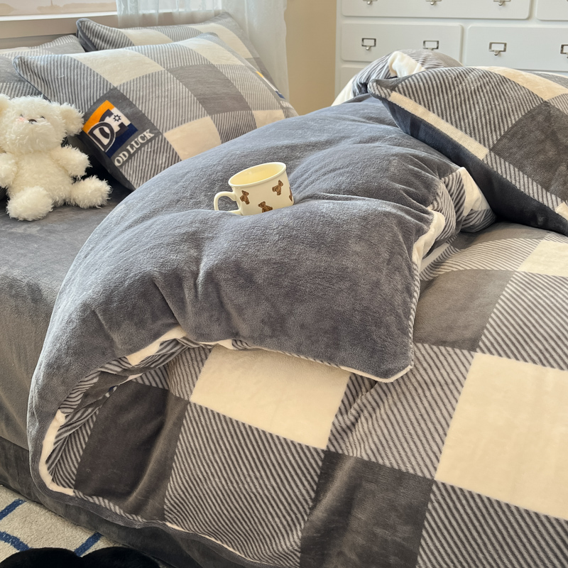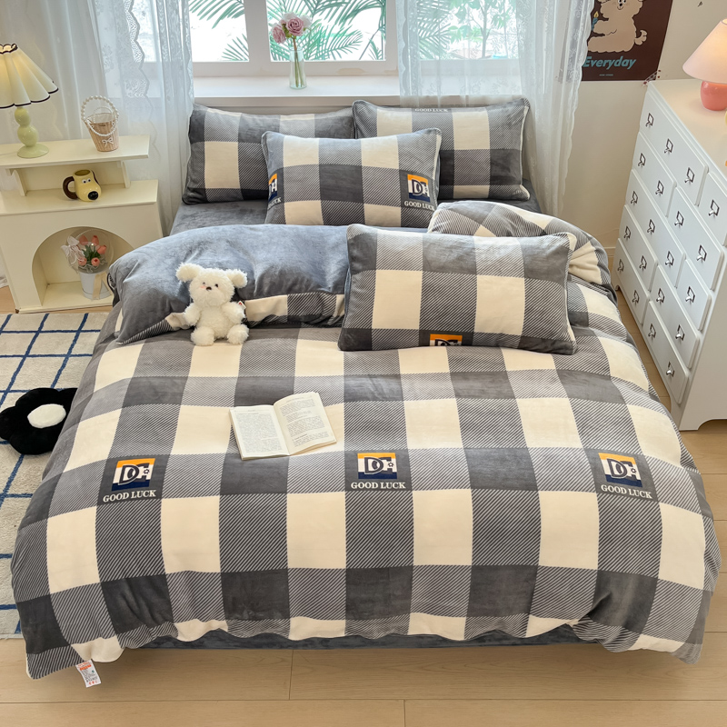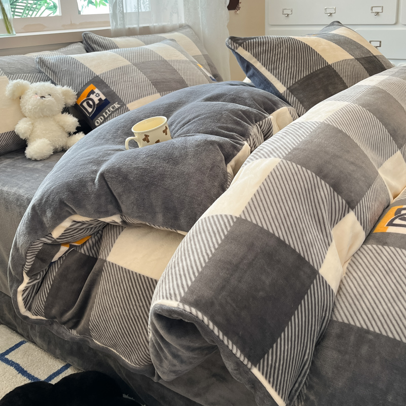 商品名称:绘萱家居 2025新款高克重印花牛奶绒四件套 大格-灰