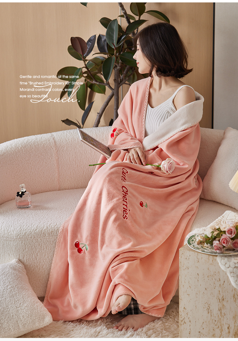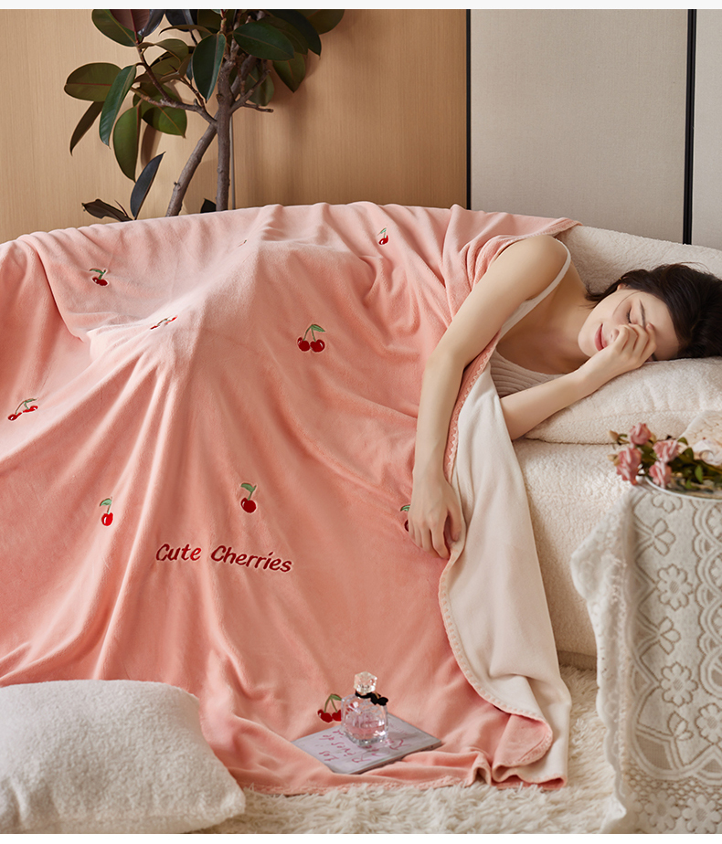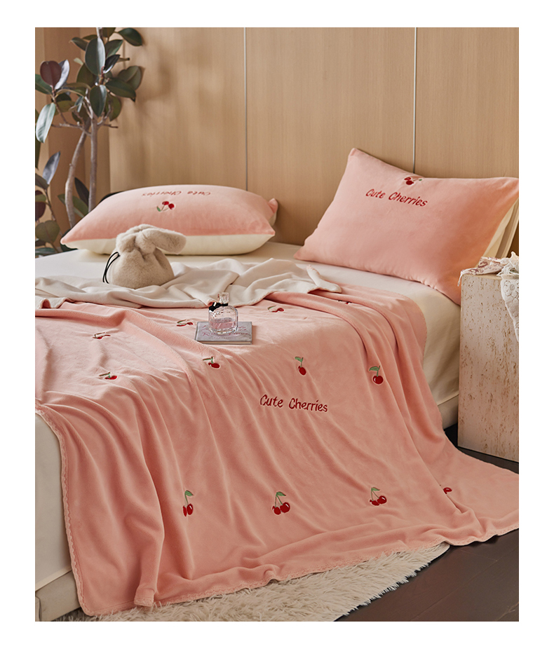 铭动家纺 2024新款牛奶绒保暖花朵毯 粉樱桃