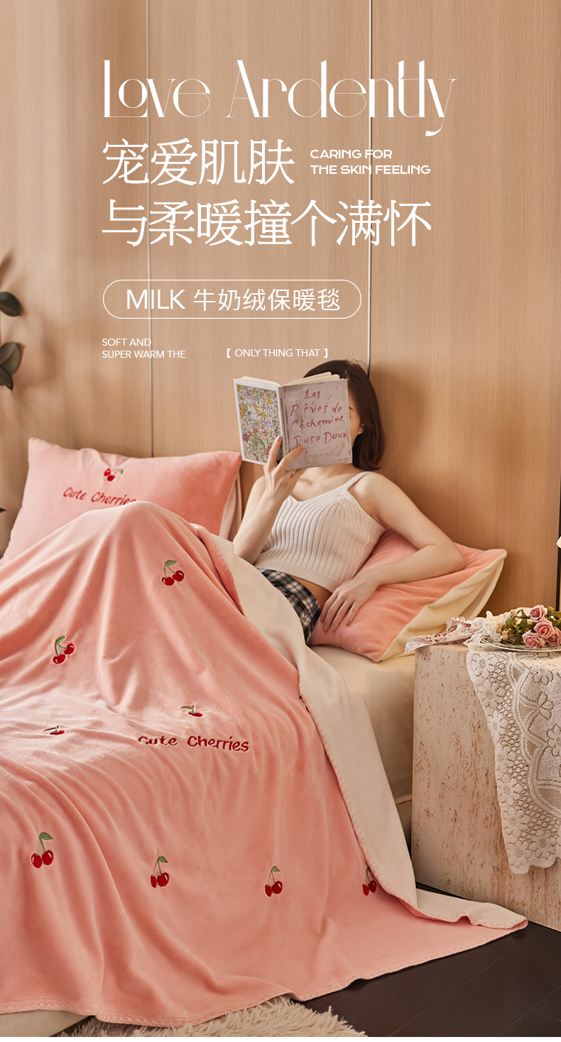 (总)铭动家纺 2024新款牛奶绒保暖花朵毯,粉樱桃,樱桃米白,郁金香粉,郁金香灰,郁金香卡其,郁金香蓝,郁金香米白