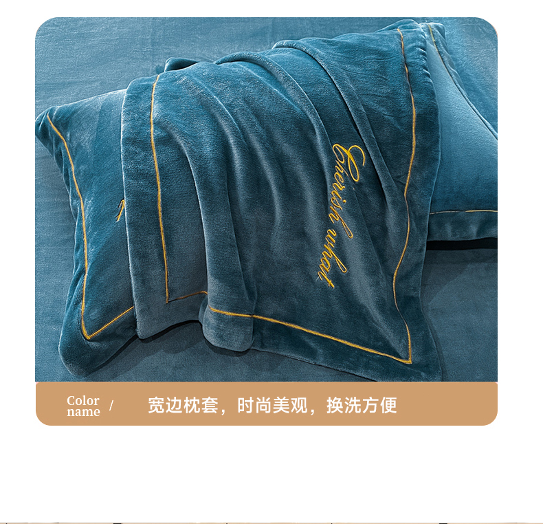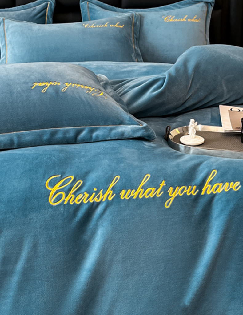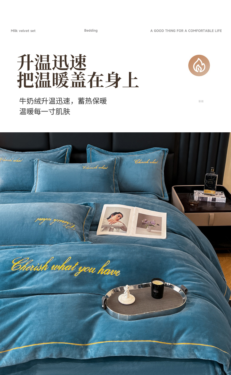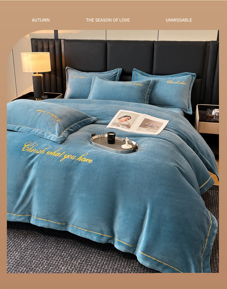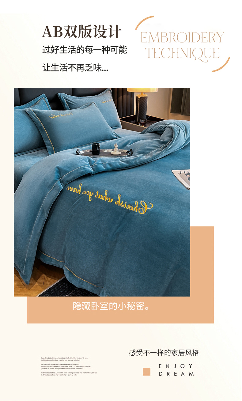 鸿织源家纺 2025新款230g全消光牛奶绒刺绣四件套 宾利蓝