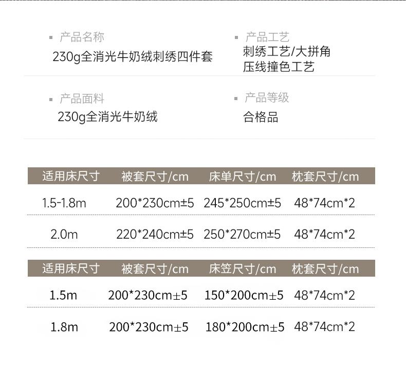 鸿织源家纺 2025新款230g全消光牛奶绒刺绣四件套 摩卡棕,摩卡棕