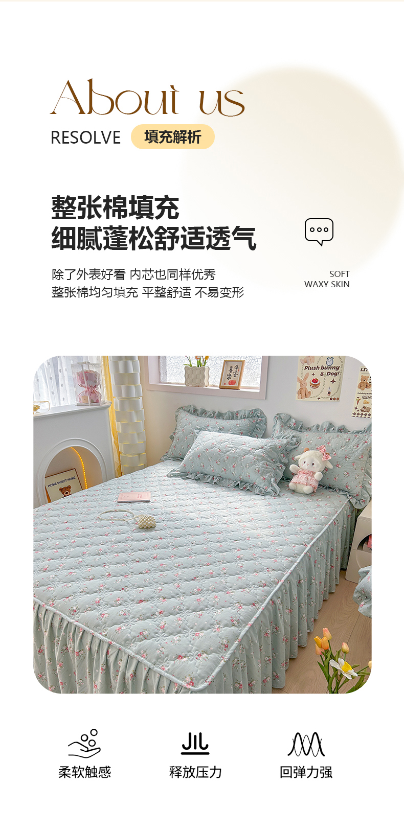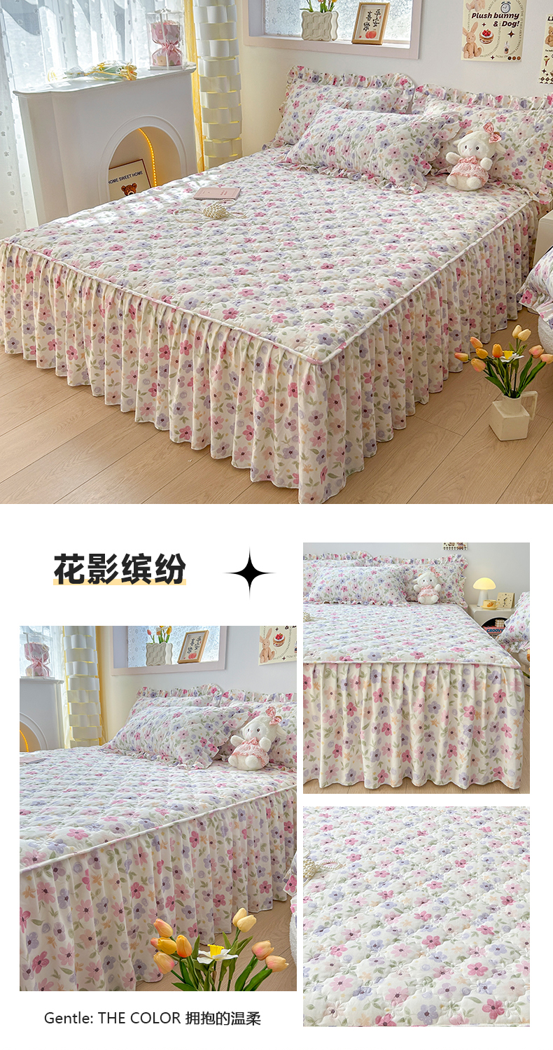 商品名称:(总)忘忧草 2025亲肤水洗棉夹棉床裙--小清新系列