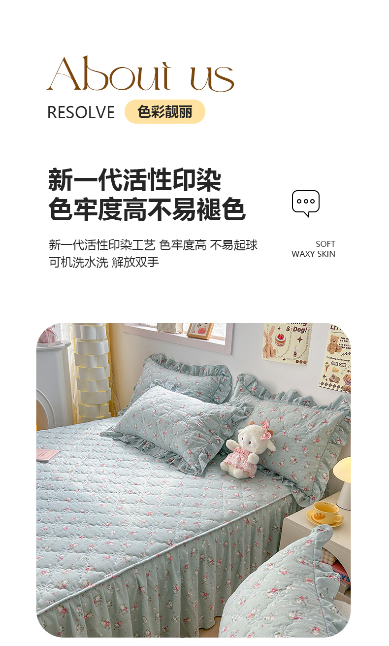 (总)忘忧草 2025亲肤水洗棉夹棉床裙--小清新系列