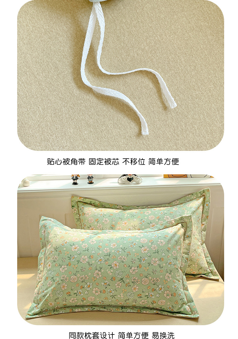 商品名称:暖芯优选 2025直播热款加厚全棉磨毛四件套喷气印花纯棉(一字绣工艺款)学生三件套9月上新 花恬