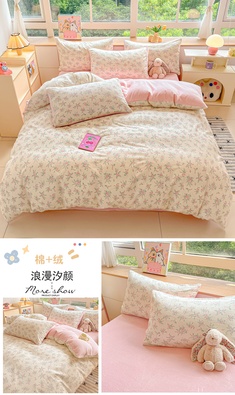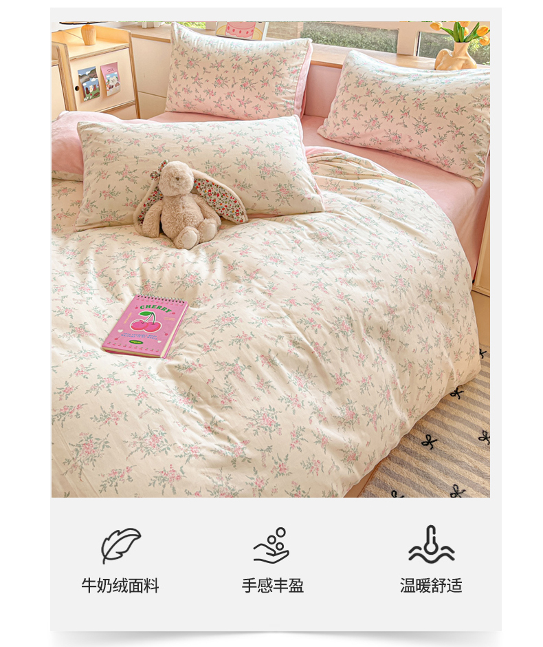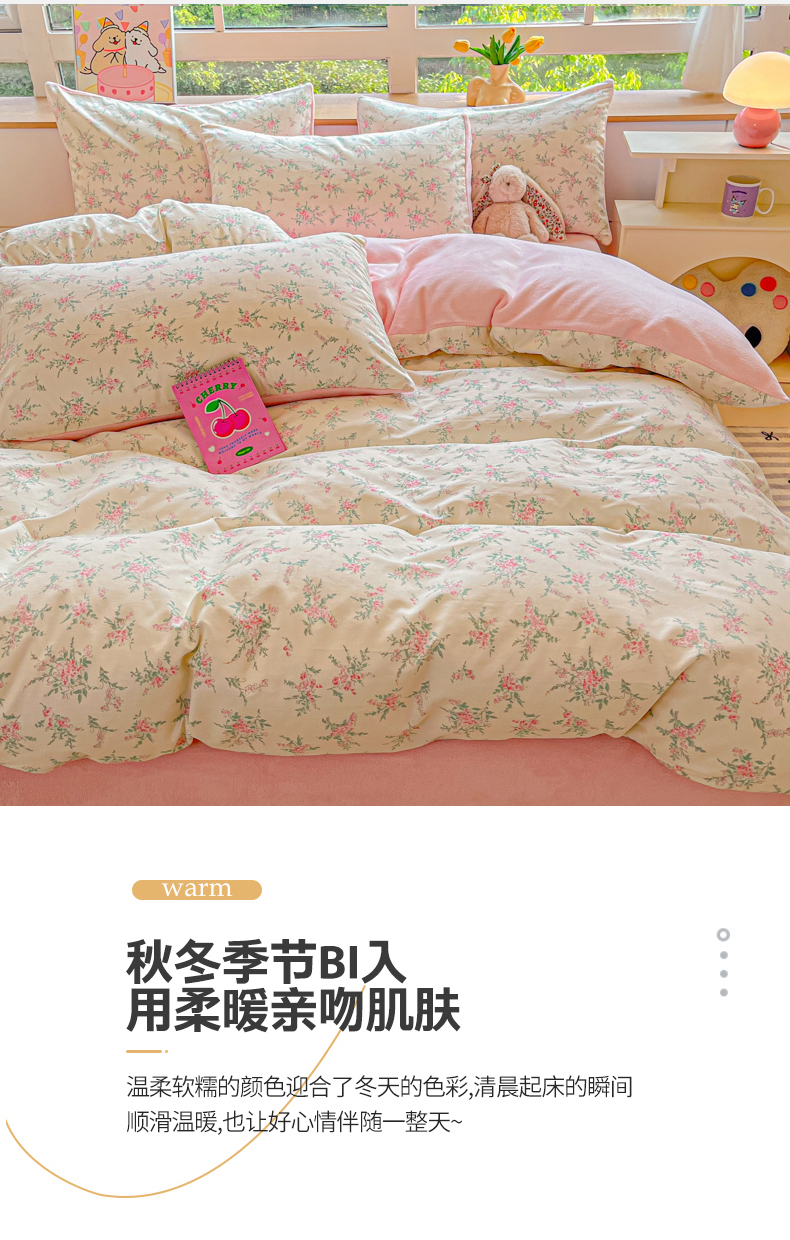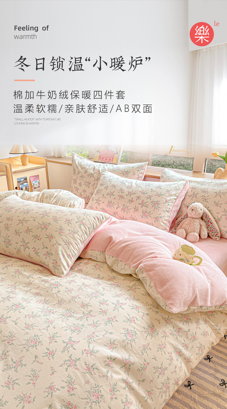 当前位置: 91家纺网 > 商品网购 > 床品套件 > 四件套 > 牛奶绒四件套 > 麦伦家居 2024秋冬新品 多功能床品全棉+牛奶绒四件套 浪漫汐颜