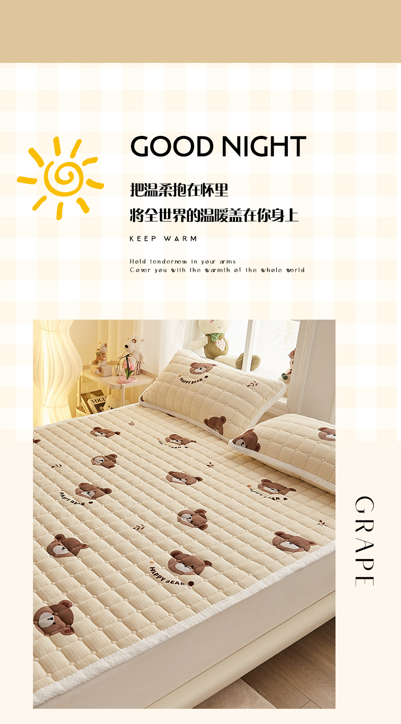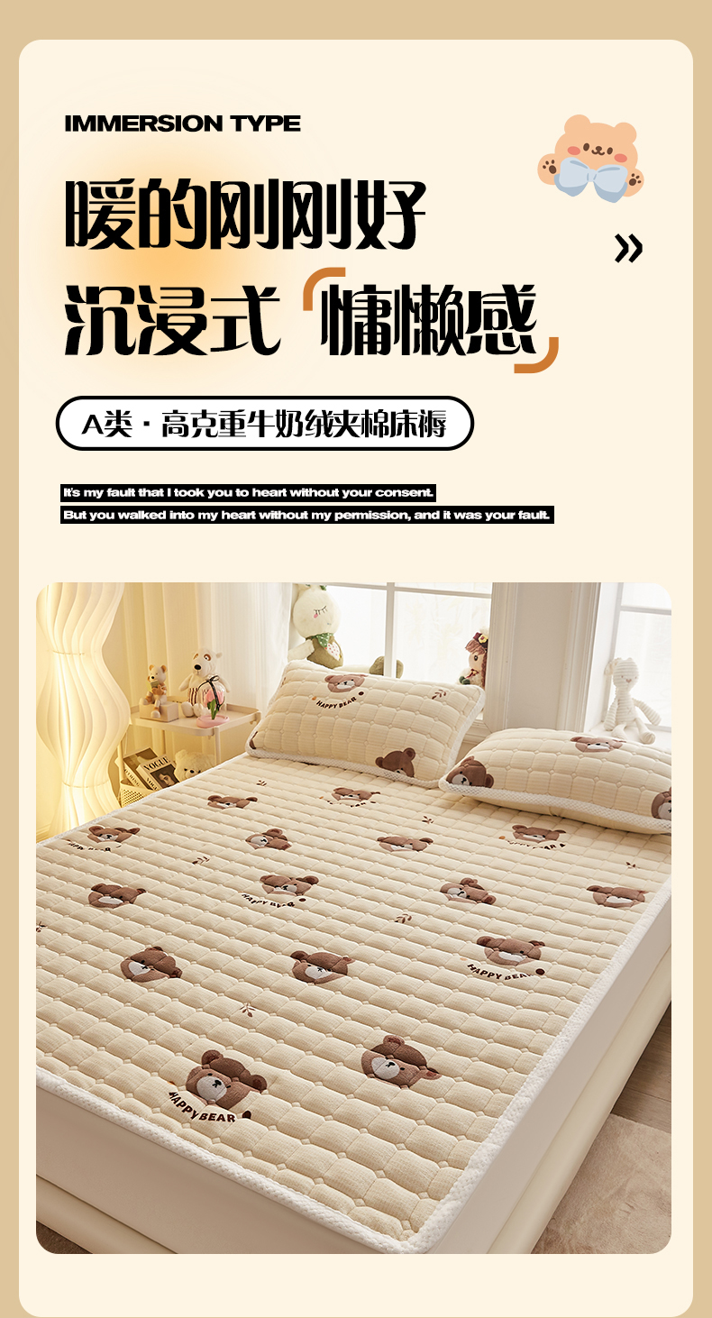 当前位置: 91家纺网 > 商品网购 > 床垫/床褥 > 普通床垫 > 东宇床垫 2024新款牛奶绒床褥大床 开心小熊