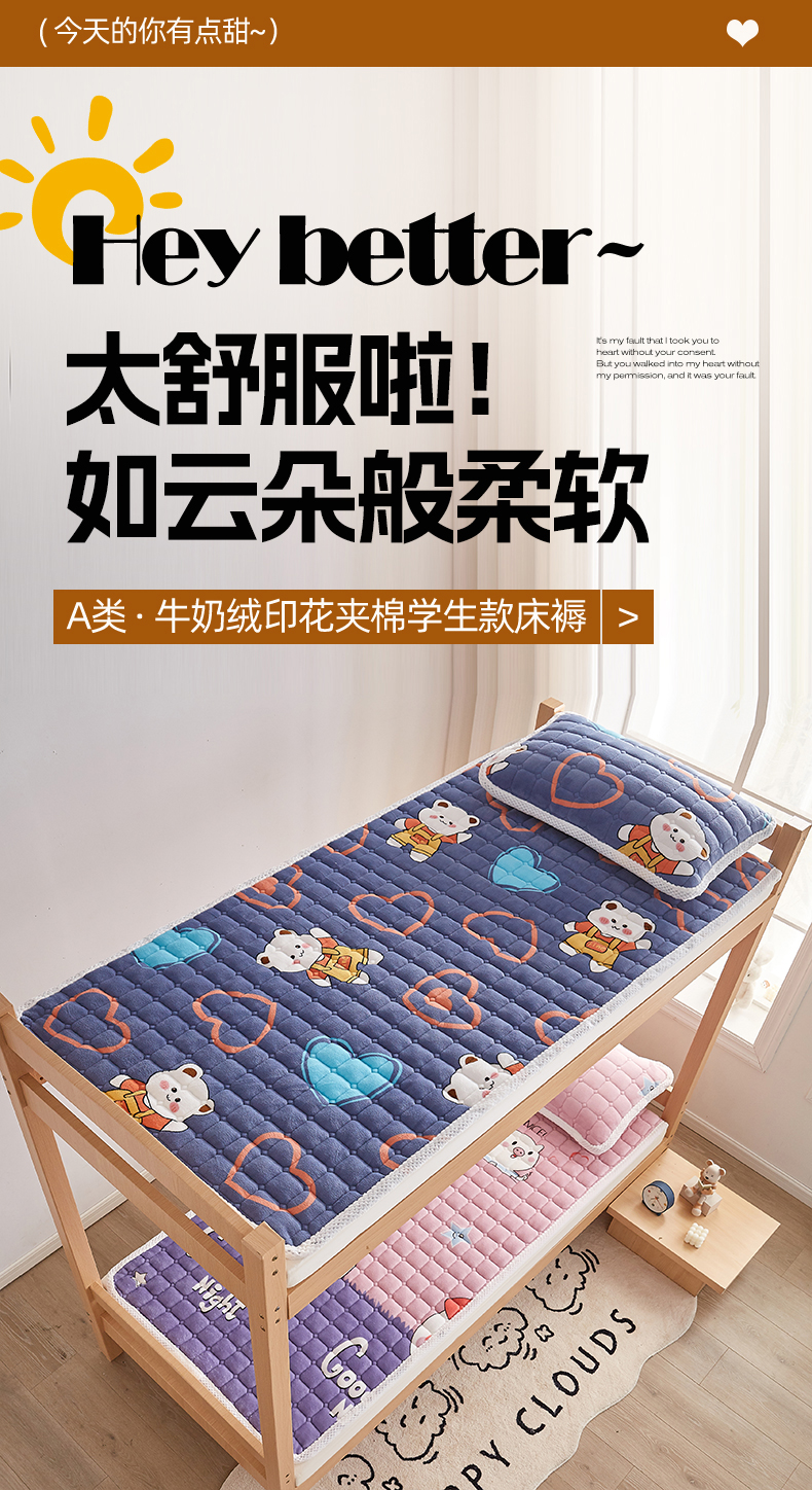 当前位置: 91家纺网 > 商品网购 > 床垫/床褥 > 普通床垫 > 东宇床垫 2025新款牛奶绒床褥学生床 爱心熊