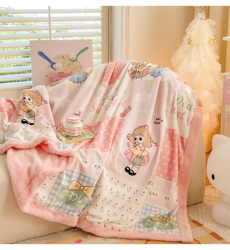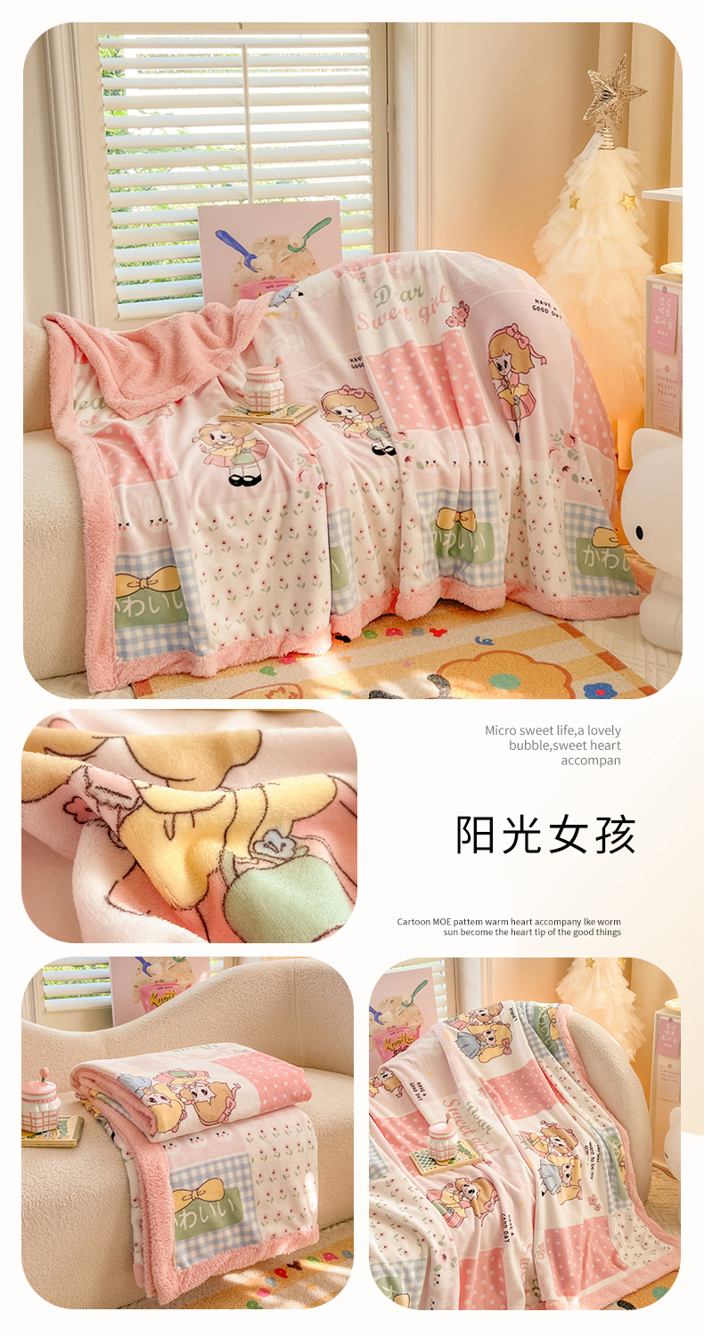 商品名称:我心家纺 2024新款高克重羊羔绒毛毯毯子 阳光女孩