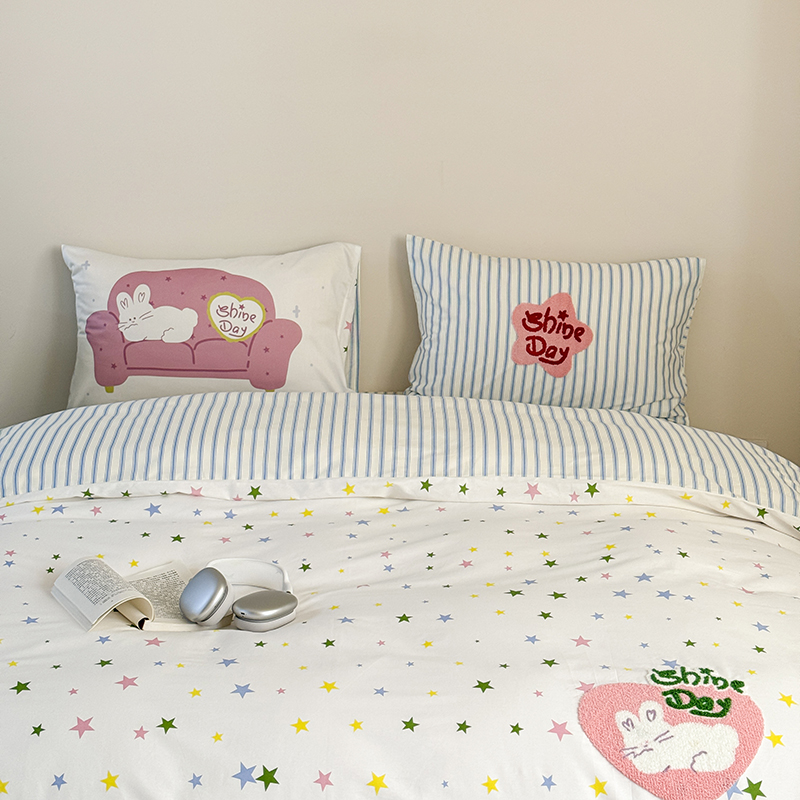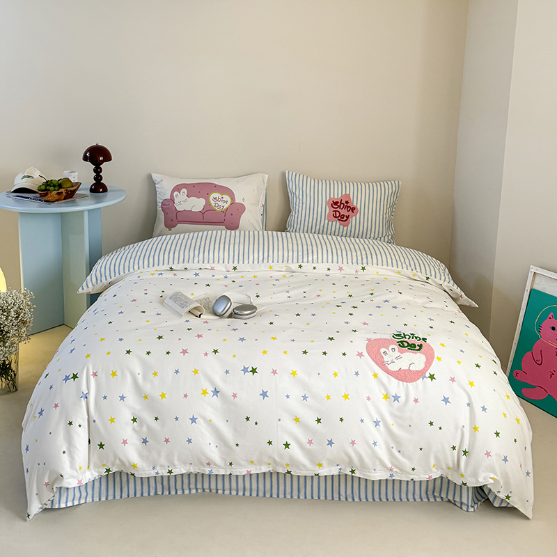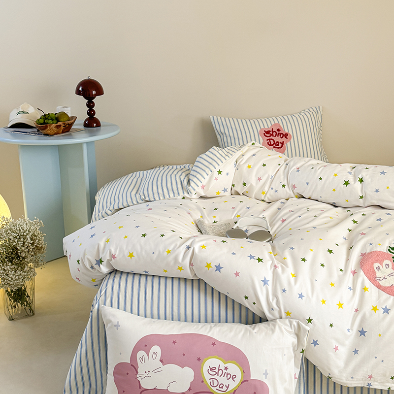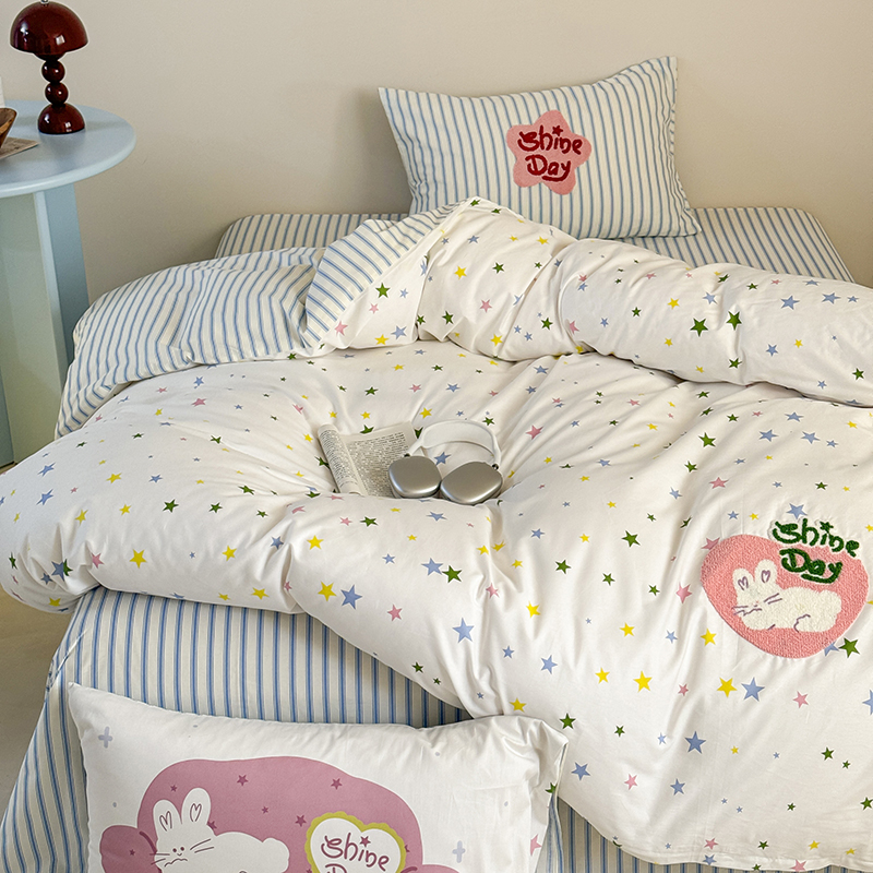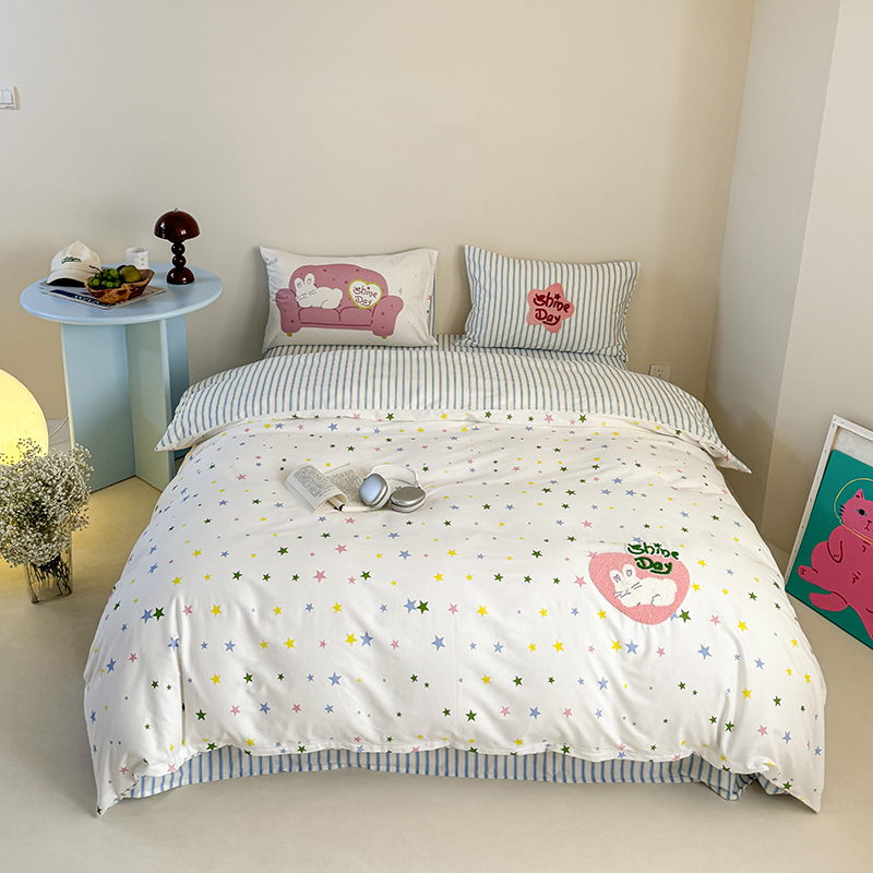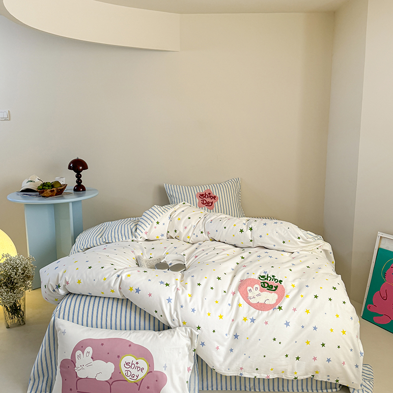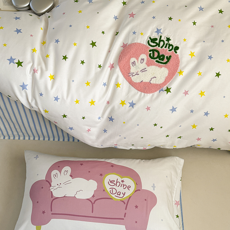 2024新款全棉数码毛巾绣ins系列四件套 沙发兔