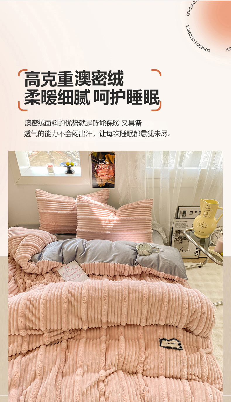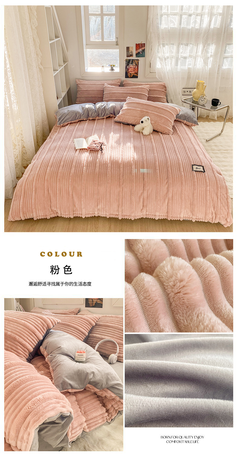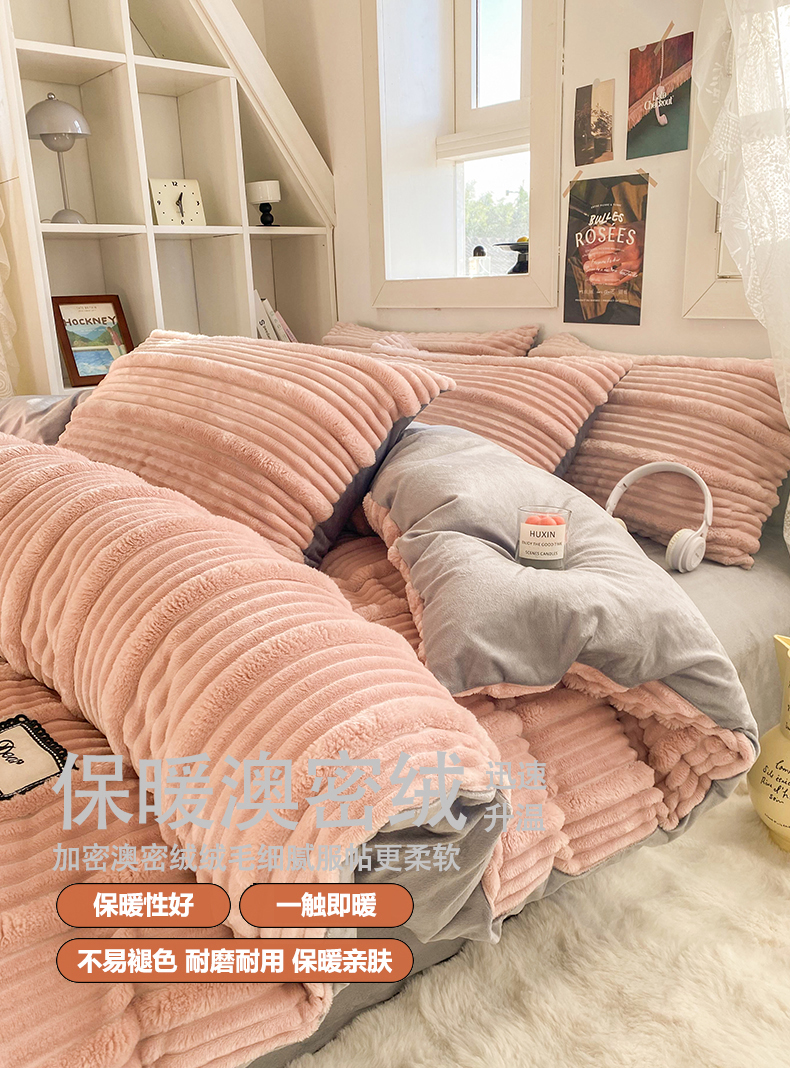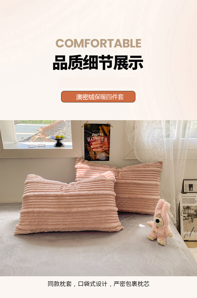 商品名称:2025新款秋冬澳密绒保暖四件套-雪瑞系列 雪瑞-粉色