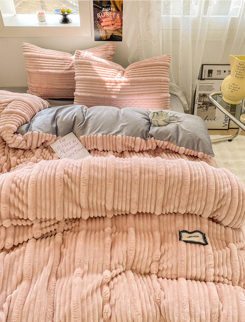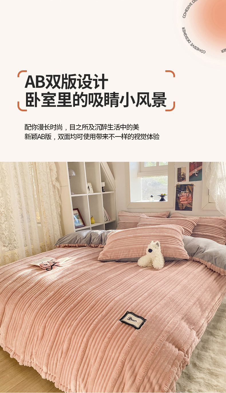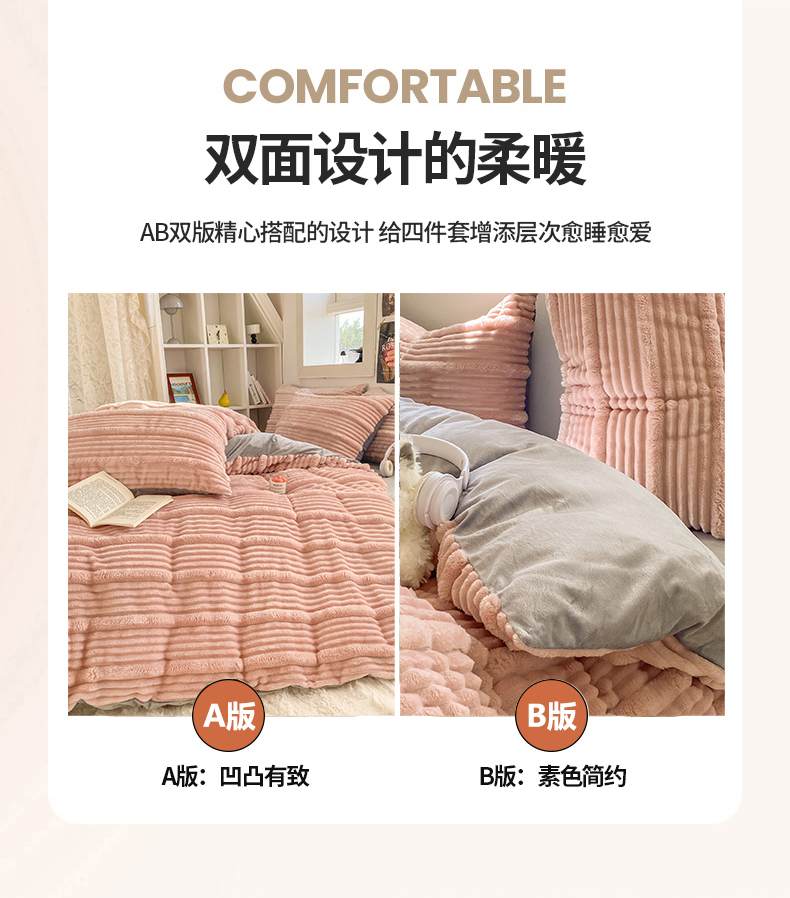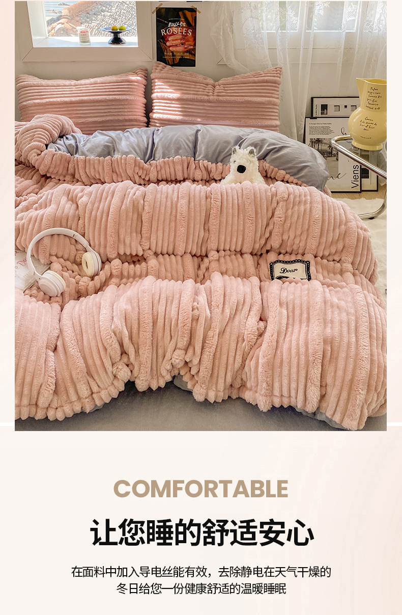 商品名称:2025新款秋冬澳密绒保暖四件套-雪瑞系列 雪瑞-粉色