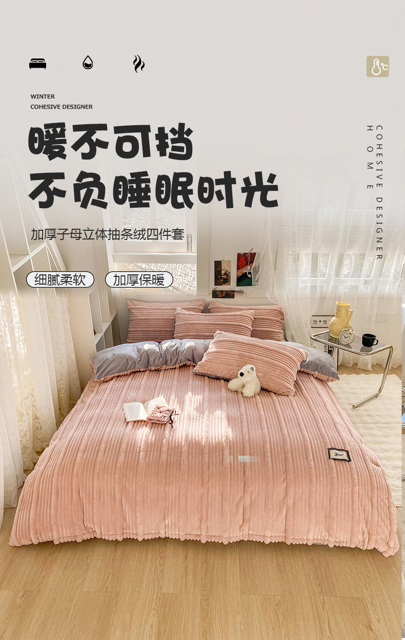 (总)潮邦创意家居 2025新款冬季阳离子提花云纹绒工艺四件套-绒眠小筑系列,绒眠小筑-清新粉,绒眠小筑-浅驼,绒眠小筑-香草绿,绒眠小筑-星灰,绒眠小筑-耀黑