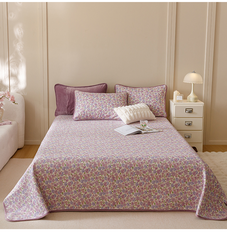 富瑞阁 2024新款婴儿绒宝宝绒牛奶绒床盖三件套单品学生宿舍床盖 紫色浪漫