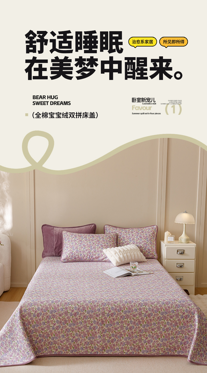 商品名称:富瑞阁 2024新款婴儿绒宝宝绒牛奶绒床盖三件套单品学生宿舍床盖 紫色浪漫