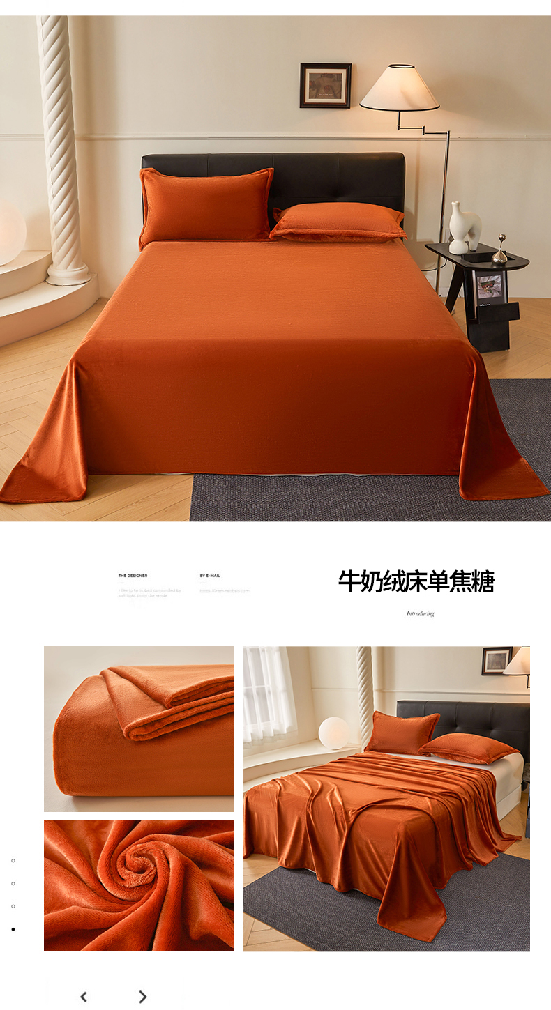 雅萱家纺 2024新款纯色牛奶绒床单 牛奶绒床单焦糖