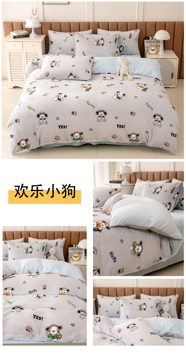 当前位置: 91家纺网 > 商品网购 > 床品套件 > 四件套 > 牛奶绒四件套 > 乐居坊 2024新款高克重牛奶绒印花保暖四件套 欢乐小狗