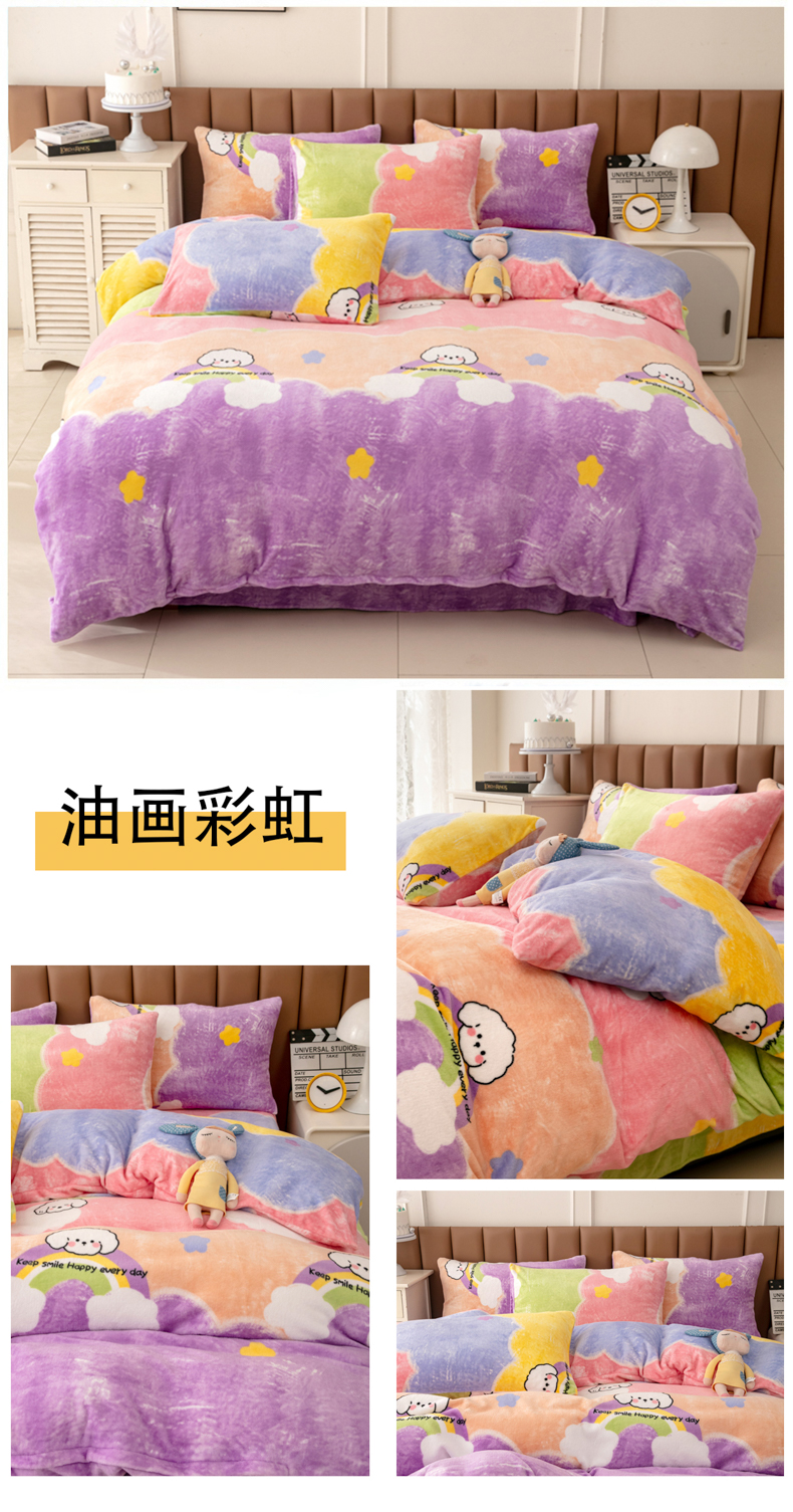 当前位置: 91家纺网 > 商品网购 > 床品套件 > 四件套 > 牛奶绒四件套 > 乐居坊 2024新款高克重牛奶绒印花保暖四件套 油画彩虹