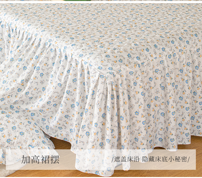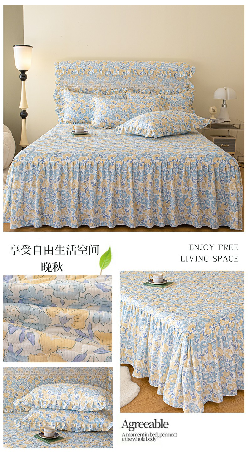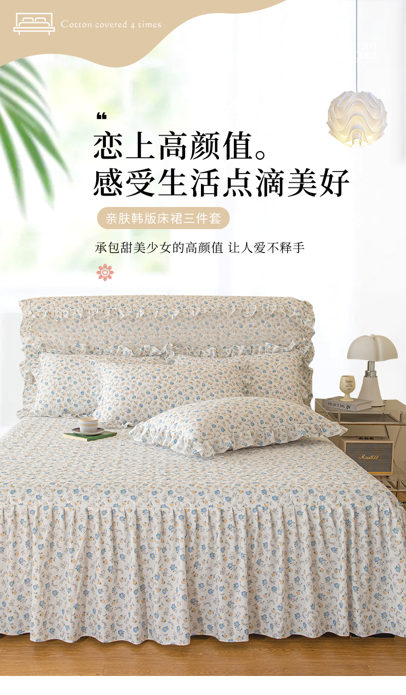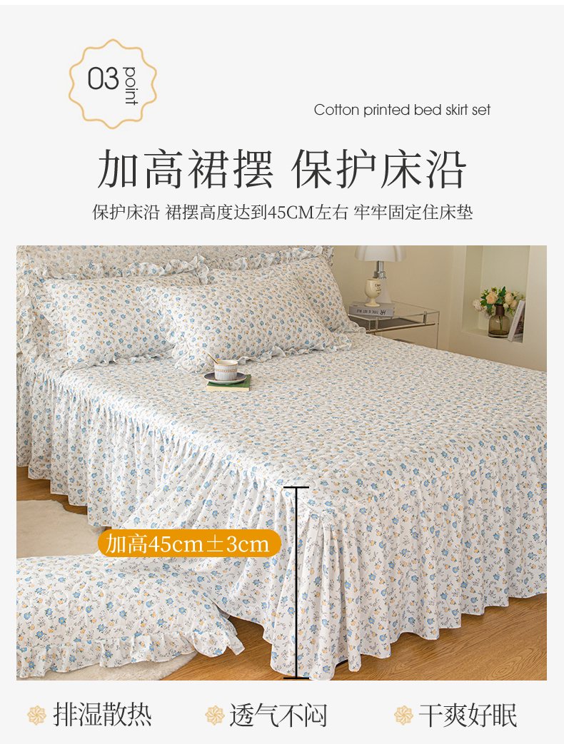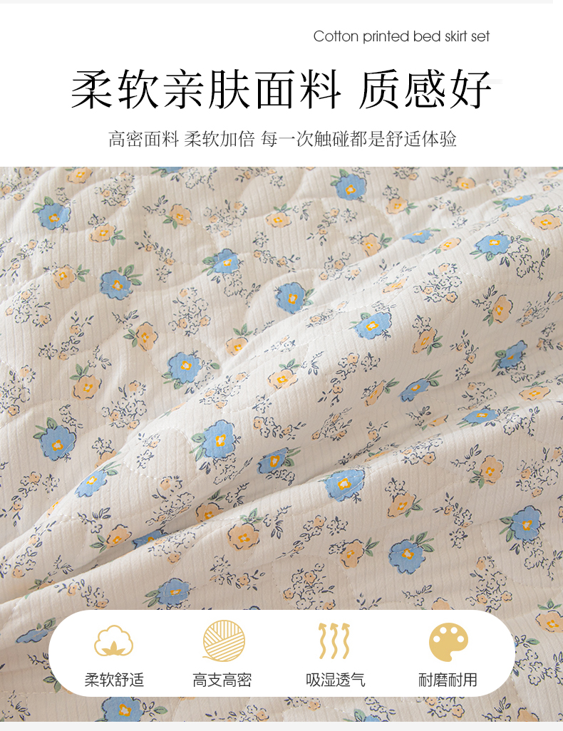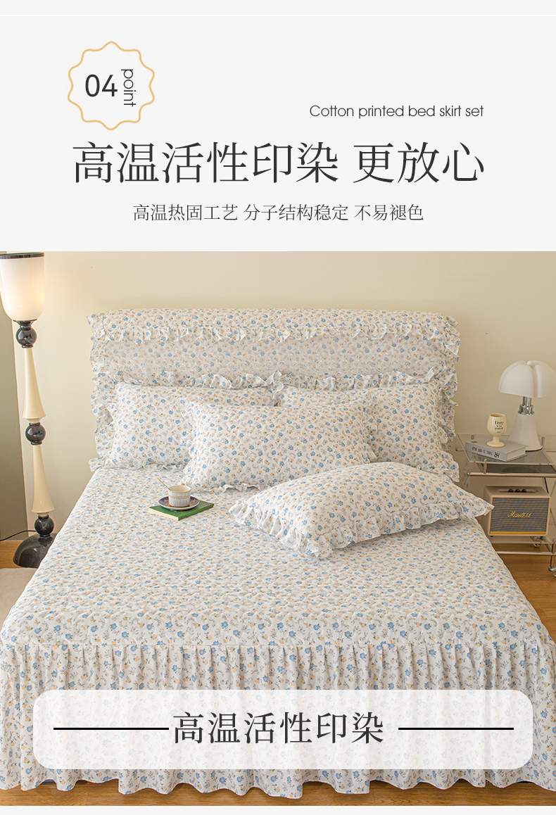 商品名称:十个点家纺 2024新款云锦棉印花床裙三件套-晚秋系列 繁花似锦