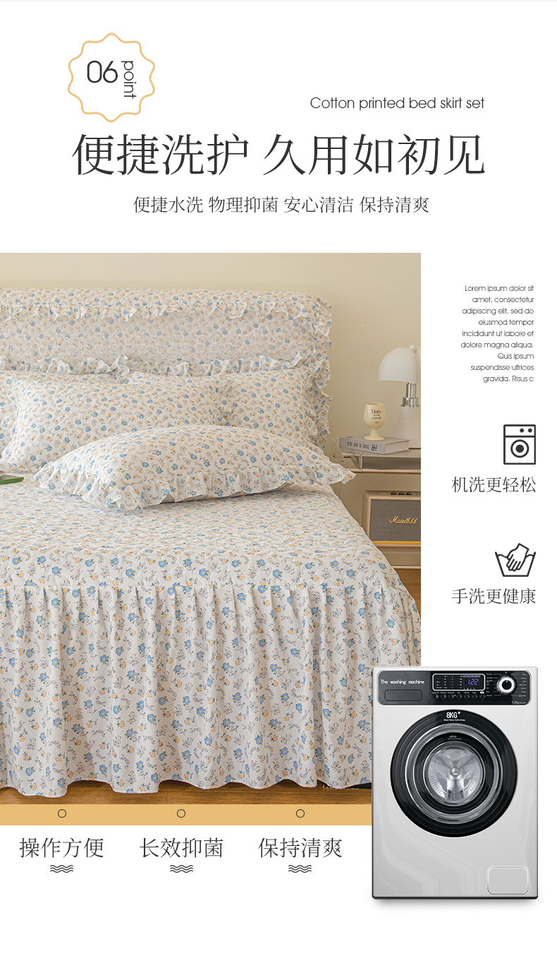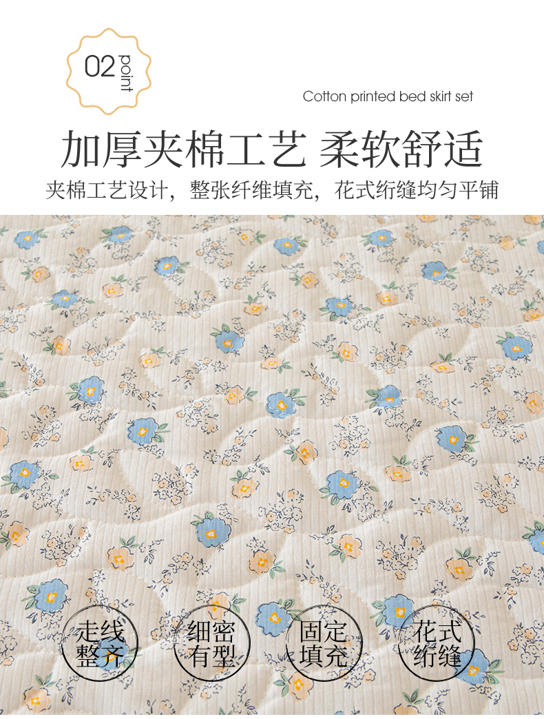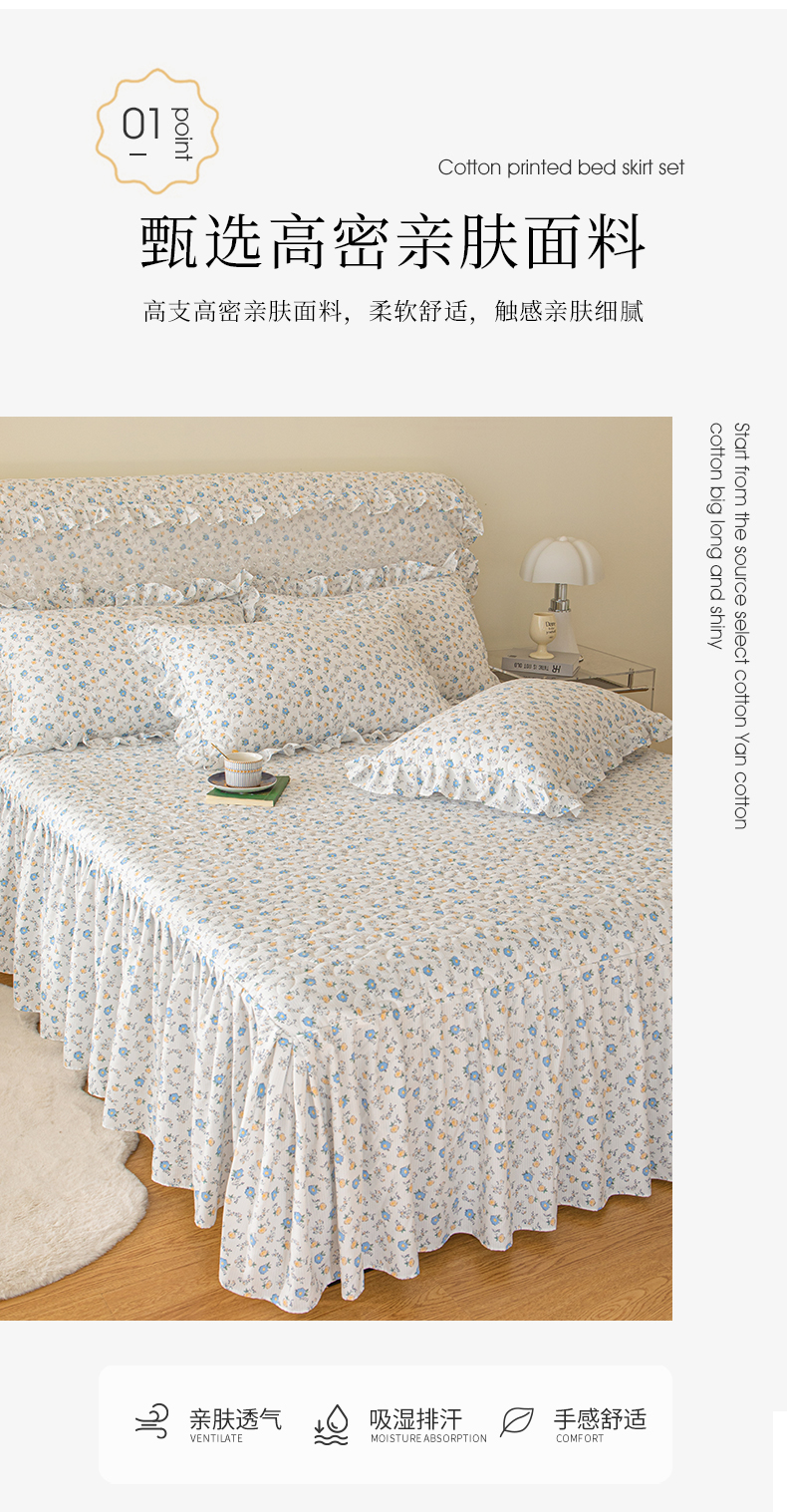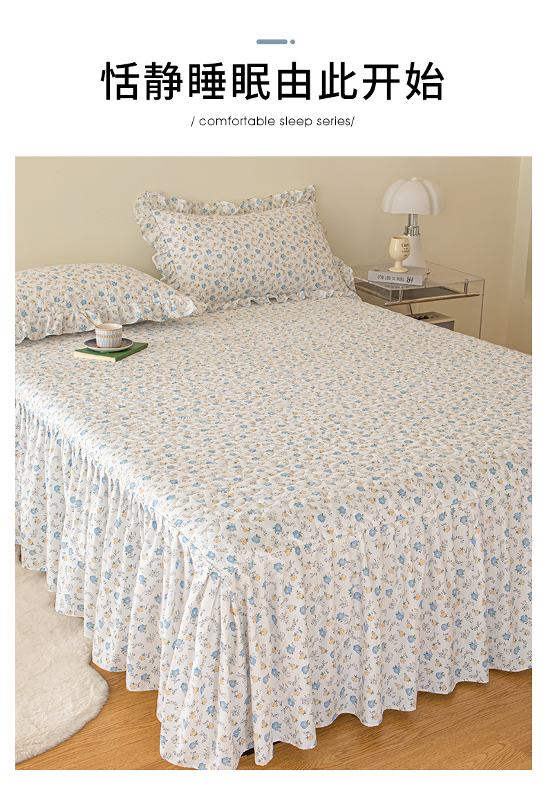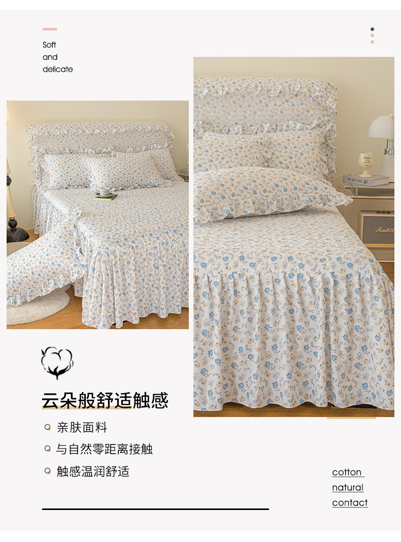 商品名称:十个点家纺 2024新款云锦棉印花床裙三件套-晚秋系列 繁花似锦