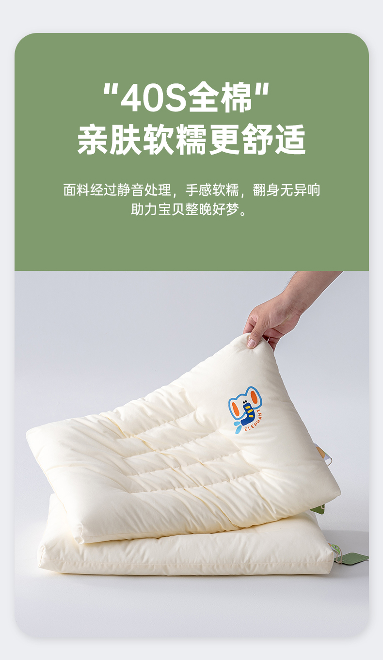 (总)北鸣有鱼枕芯馆 2024新款AbstractEXP.抽象小象亲子枕学生枕儿童A类全棉精梳棉可水洗枕头枕芯