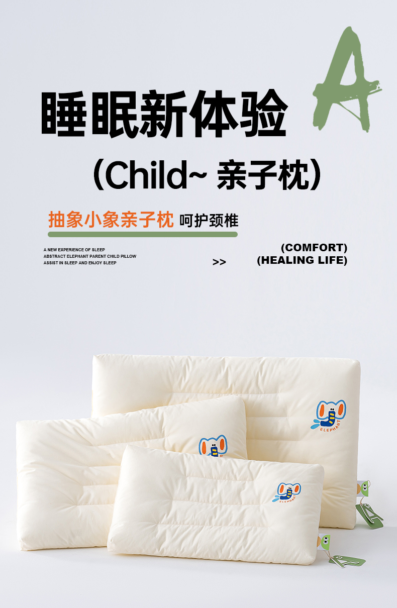 商品名称:(总)北鸣有鱼枕芯馆 2024新款AbstractEXP.抽象小象亲子枕学生枕儿童A类全棉精梳棉可水洗枕头枕芯