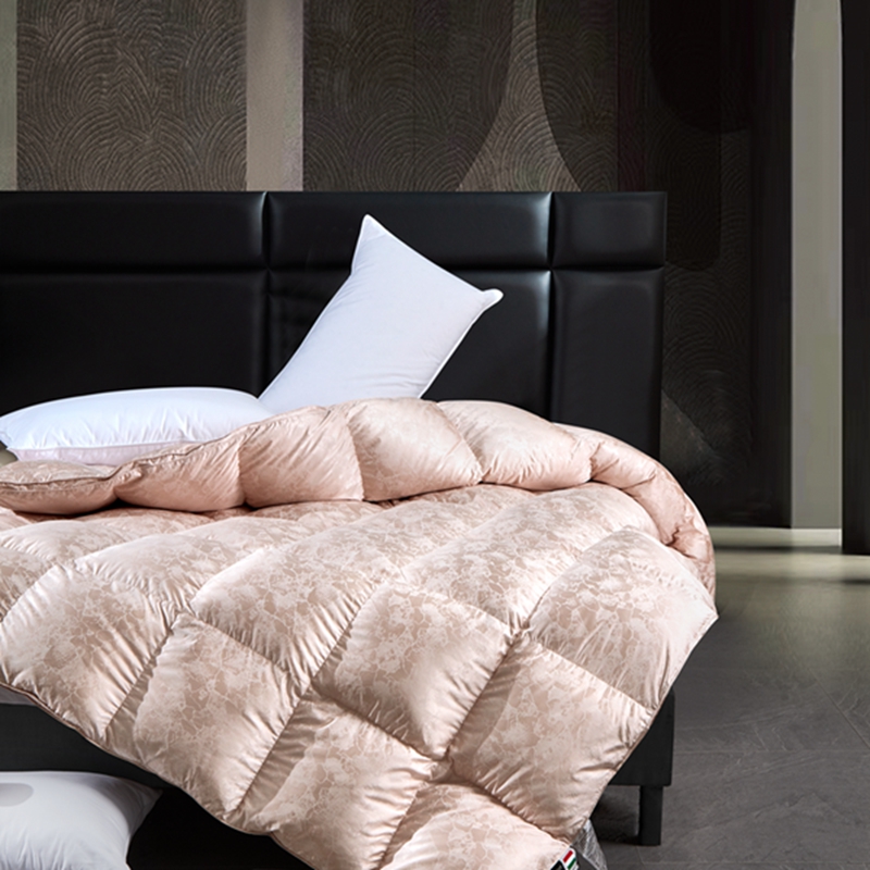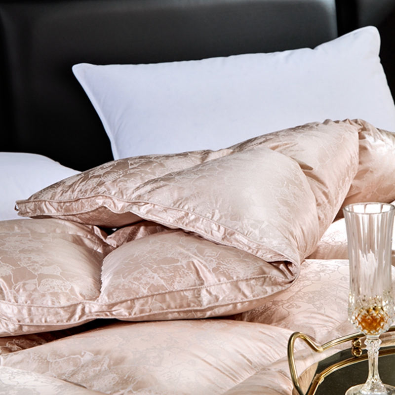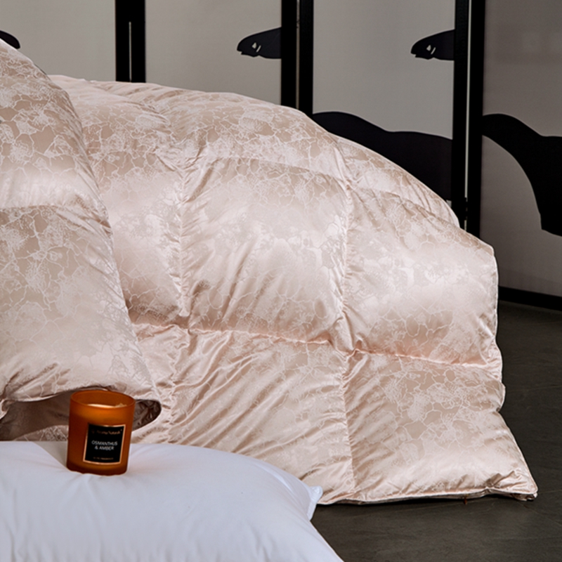 (总)静若居 2025新款高端提花羽绒被鸭绒被贡缎提花单层羽绒被壳,飘颜粉,飘金色,飘高级灰