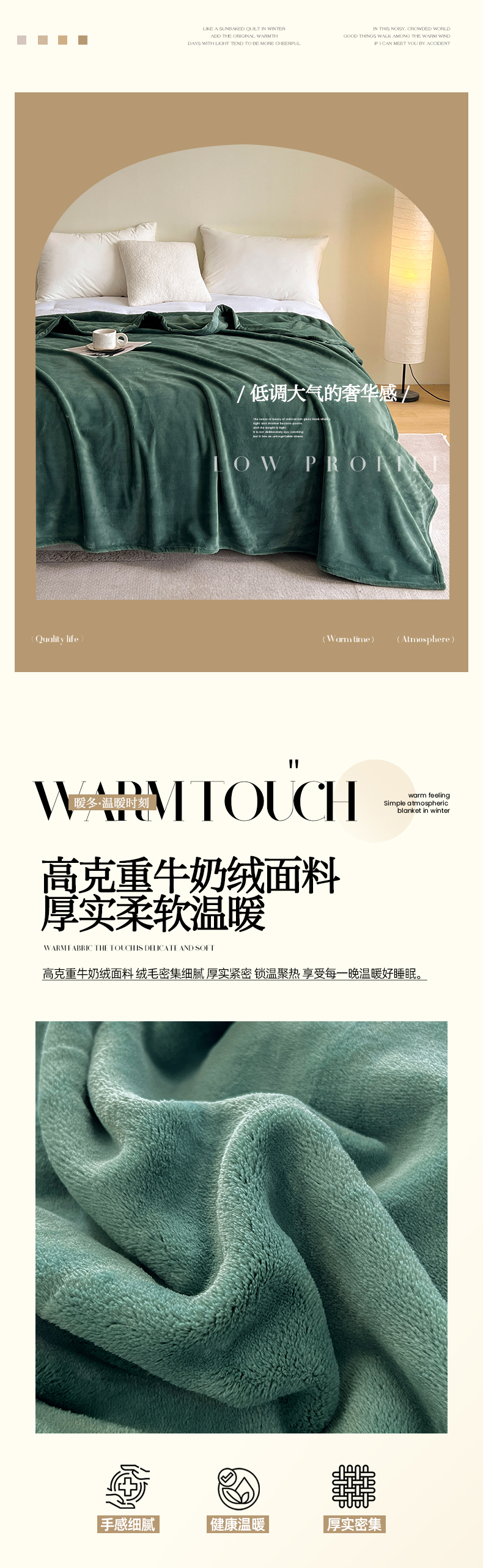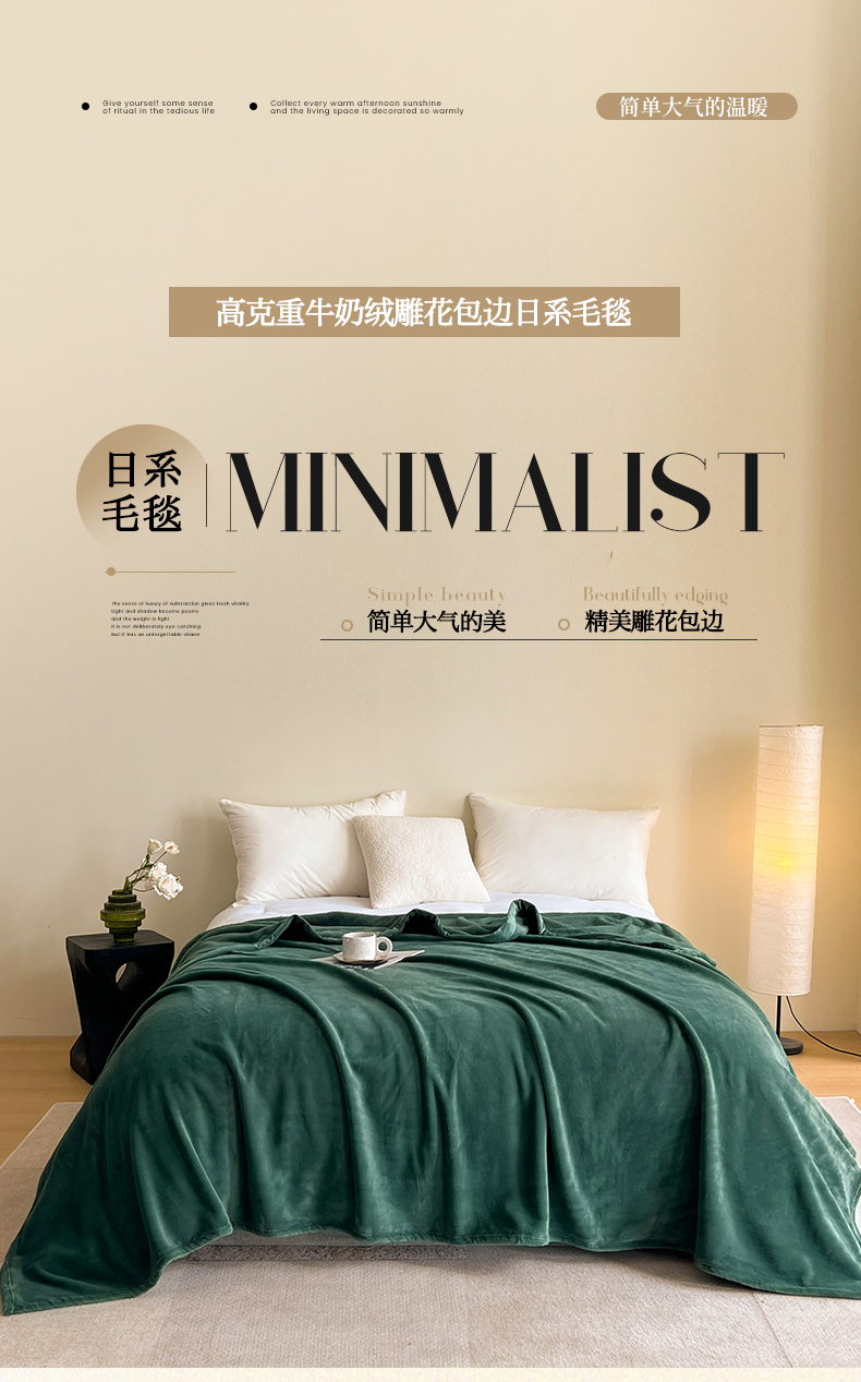 商品名称:网客家纺 2024新款日系休闲保暖毯(外贸跨境专供) 格伦墨绿