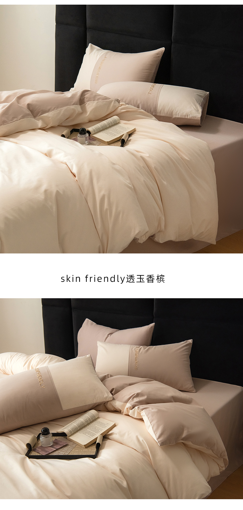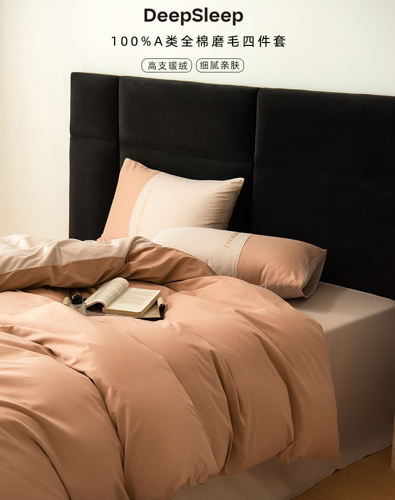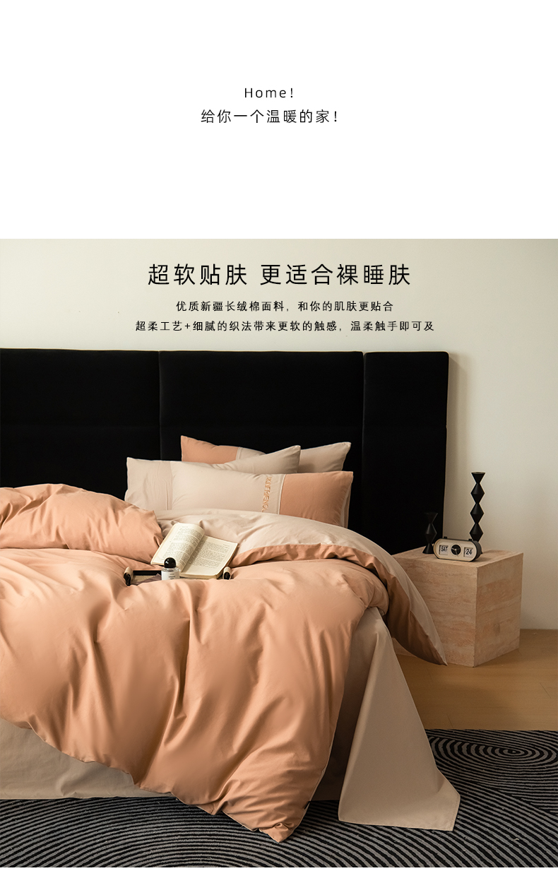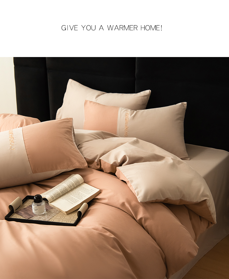 商品名称:Mr.pig猪先生水洗棉 2024新款50全棉绣花磨毛工艺款四件套 skin friendly太妃香槟