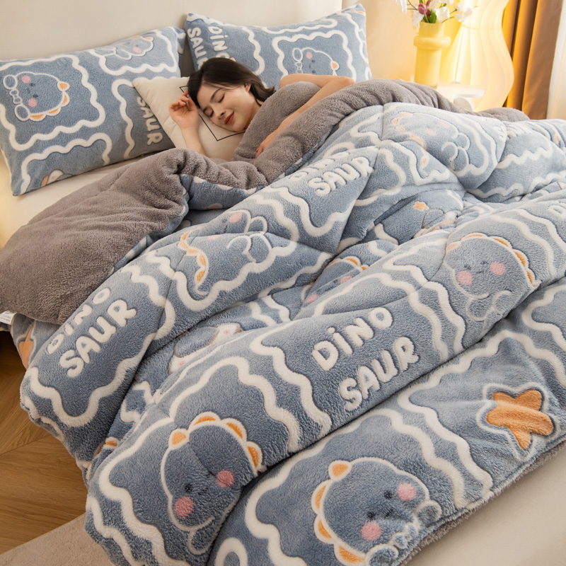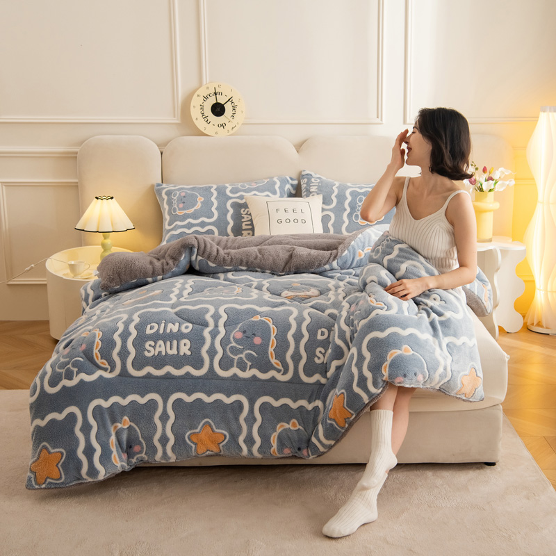 • 91家纺网 家纺一手货源 找家纺 畅销被业2025新款加厚保暖雪花绒冬被春秋被被子被芯(跨境)小恐龙