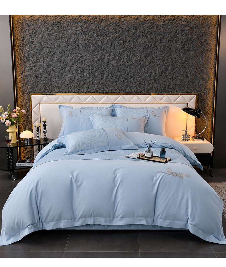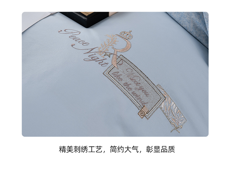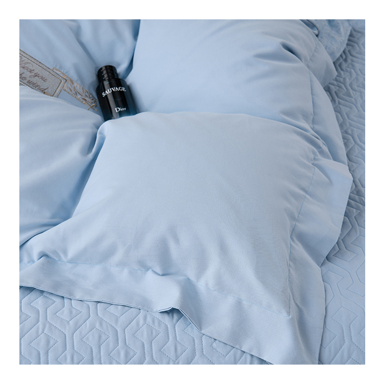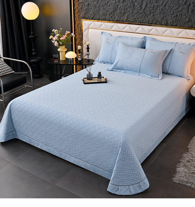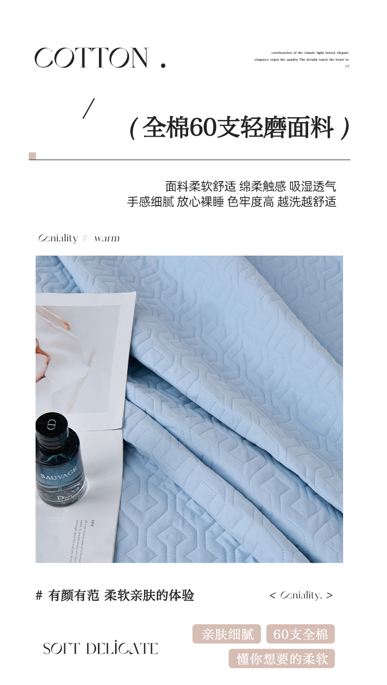 商品名称:小时代家纺 2024新款全棉60支轻磨毛肌理纹夹棉床盖四件套-珂洛 珂洛-月光蓝